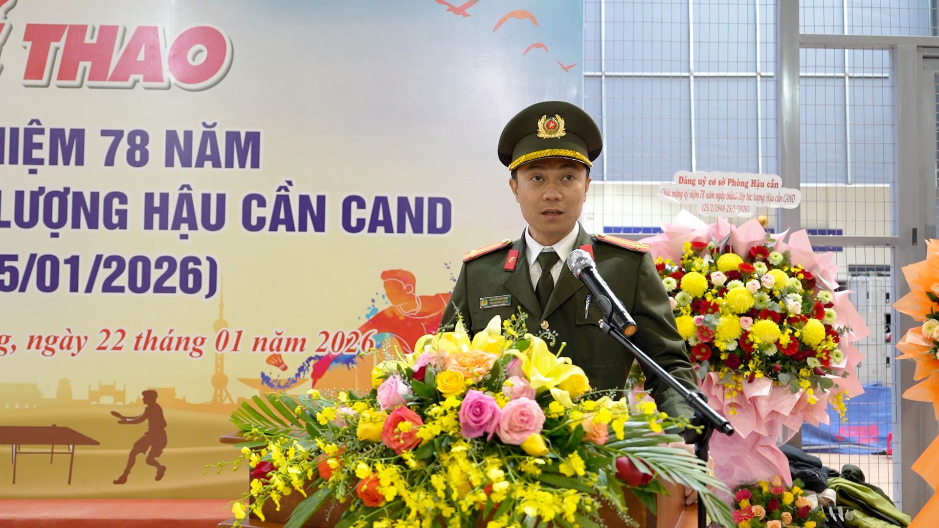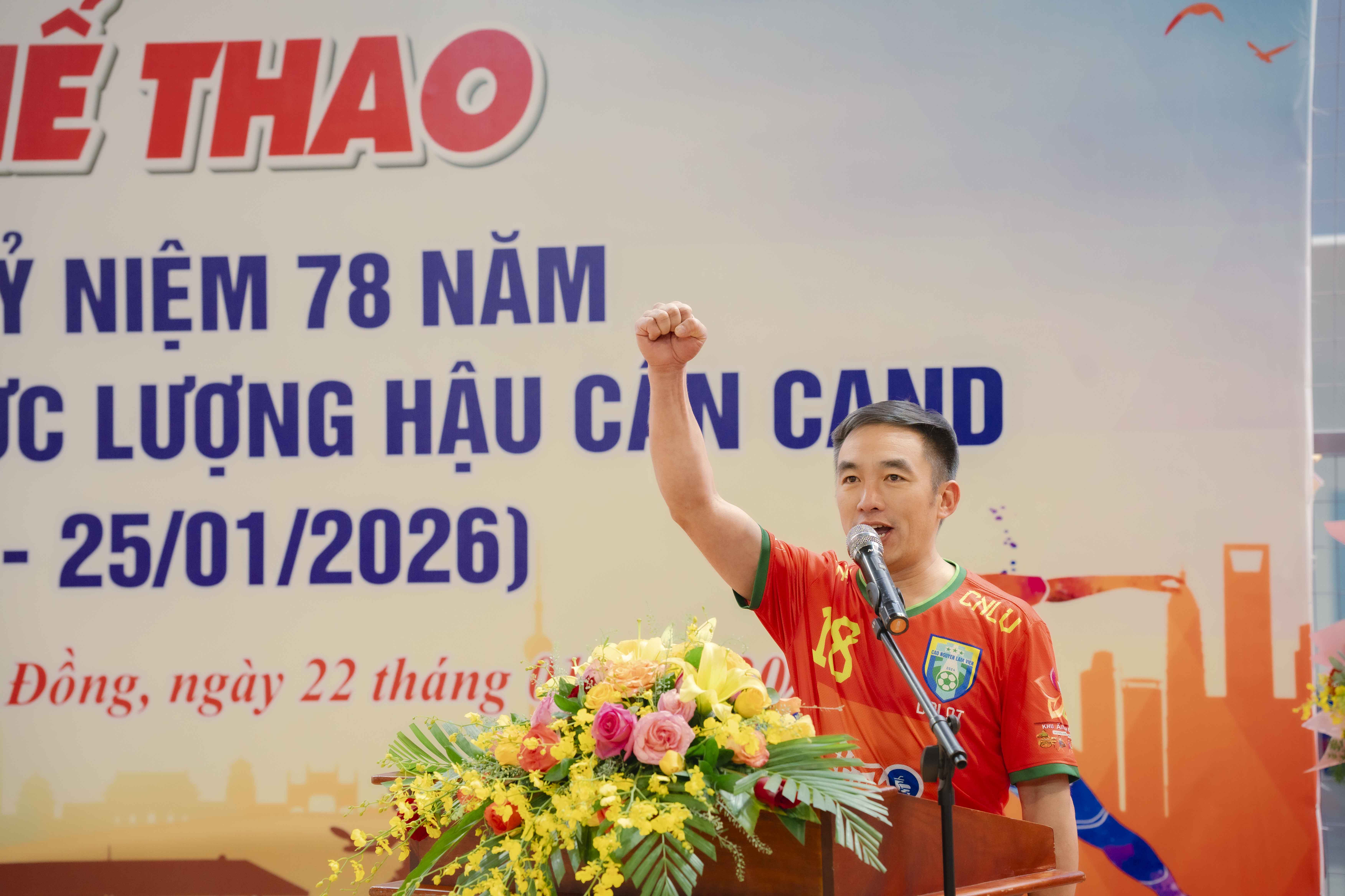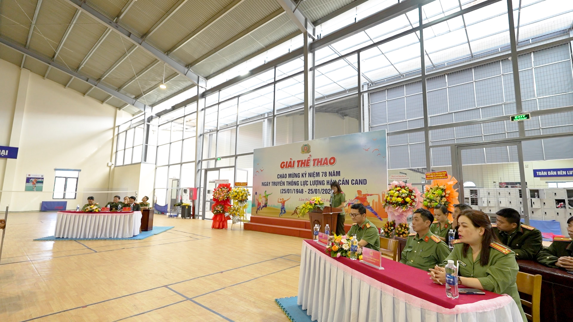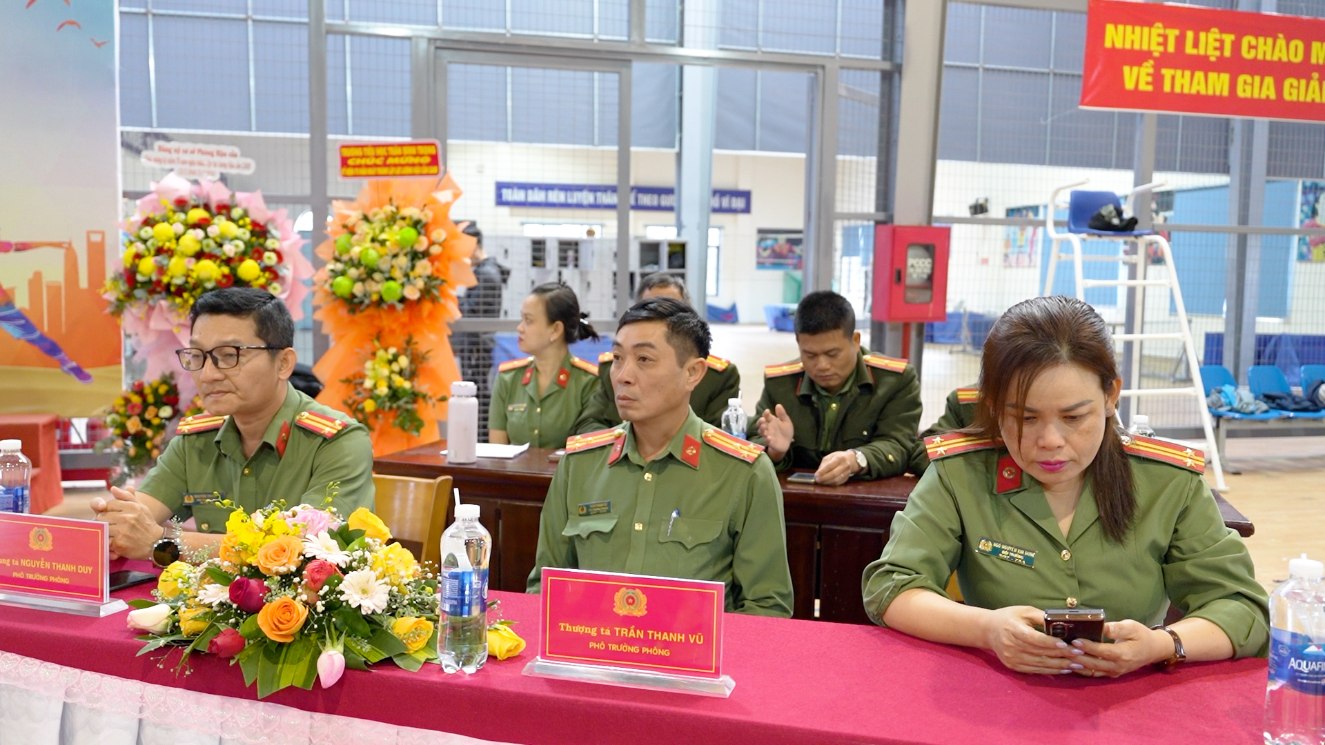 Phát biểu tại lễ khai mạc, đồng chí Trung tá Nguyễn Hữu Nam –Phó Trưởng phòng Hậu cần, Phó Trưởng ban tổ chức giải đã nhấn mạnh: Trong bối cảnh toàn Đảng, toàn dân đang hướng tới Đại hội Đảng toàn quốc lần thứ XIV và các sự kiện lớn của đất nước, việc tổ chức giải thể thao là một trong những nội dung trọng tâm của công tác xây dựng lực lượng. Đồng chí bày tỏ sự ghi nhận tinh thần chủ động, trách nhiệm cao của các đội tham gia, đồng thời mong muốn các trận đấu diễn ra sôi nổi, công bằng, tuân thủ luật lệ, thể hiện tinh thần đoàn kết, giao lưu, tạo nên những trận đấu đẹp, góp phần xây dựng hình ảnh lực lượng Công an nhân dân “vì nước quên thân, vì dân phục vụ”.