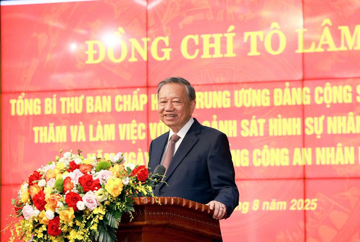 Tổng Bí thư Tô Lâm phát biểu chỉ đạo tại Hội nghị Đảng ủy Công an Trung ương 6 tháng đầu năm 2025.
