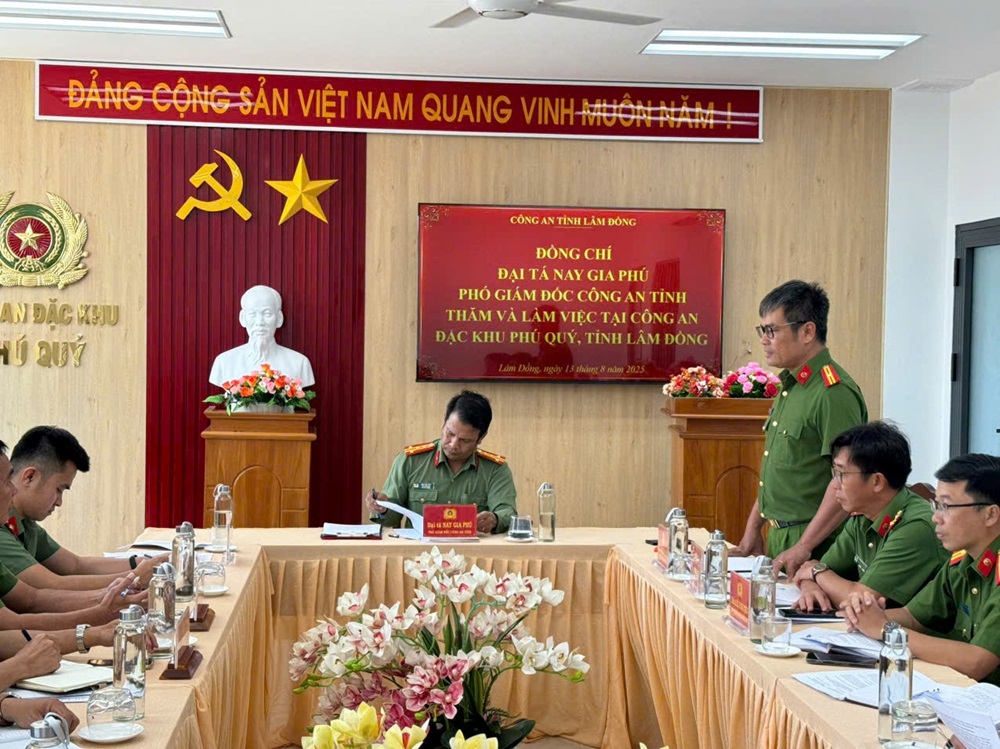 Tìm kiếm thông tin Chọn Tin mới Giới thiệu --Giới thiệu chung --Lịch sử phát triển --Lãnh đạo Công an tỉnh Chỉ đạo - Điều hành --Của lãnh đạo Bộ Công an --Của Lãnh đạo Công an tỉnh Tin tức - Sự kiện --Hoạt động của Bộ Công an --Hoạt động của Công an tỉnh --Hoạt động của Công an các đơn vị, địa phương --Các hoạt động an sinh xã hội --An ninh, trật tự Thông tin chuyên đề --Cảnh báo tội phạm --Chính trị - Xây dựng Đảng --Hướng dẫn tố giác tội phạm --Quản lý nhà nước về an ninh, trật tự --Đề án 06 - Chuyển đổi số - Dịch vụ công --Phòng cháy, chữa cháy và cứu nạn, cứu hộ --Bảo đảm trật tự, an toàn giao thông --Phong trào toàn dân bảo vệ ANTQ --Người tốt, việc tốt --Tổng hợp - Thống kê Đấu tranh phản bác Phổ biến, giáo dục pháp luật Phản ánh - Kiến nghị Thông báo Thông tin cần biết --Tuyển chọn công dân vào CAND --Tuyển chọn lao động hợp đồng --Hướng dẫn xử lý vi phạm hành chính --Thông tin truy nã, truy tìm --Tuyển sinh Công an nhân dân Văn bản Liên hệ Tin Media Lịch tiếp công dân Tất cảTiêu đề bài viếtNội dung Tìm kiếm Tìm thấy : 13 bài viết Công an đặc khu Phú Quý tổ chức Hội nghị triển khai công tác phối hợp với Đồn Biên phòng cửa khẩu cảng Phú Quý  09:22 09/10/2025 |   70 Sáng ngày 03/10/2025, Công an đặc khu Phú Quý đã phối hợp với Đồn Biên phòng cửa khẩu Cảng Phú Quý tổ chức Hội nghị đánh giá tình hình, kết quả thực hiện công tác phối hợp trong công tác quản lý người nước ngoài và khai thác hải sản bất hợp pháp, không khai báo và không theo quy định (IUU) trong 9 tháng đầu năm, triển khai nhiệm vụ trọng tâm phối hợp thực hiện những tháng cuối năm 2025. Công an đặc khu Phú Quý khống chế kịp thời đối tượng manh động, đảm bảo an toàn khu dân cư  22:49 29/09/2025 |   1439 Chiều ngày 24/9/2025, Cơ quan Cảnh sát điều tra Công an tỉnh Lâm Đồng đã tống đạt Quyết định khởi tố bị can và thi hành Lệnh tạm giam đối với Ngô Văn Thuận (SN 1978) thường trú tại thôn Mỹ Khê, đặc khu Phú Quý, tỉnh Lâm Đồng để điều tra về tội “Gây rối trật tự công cộng”. Đặc khu Phú Quý sẵn sàng cho mùa tuyển quân 2026  00:06 24/09/2025 |   269 Thực hiện chỉ đạo của Bộ Công an và Công an tỉnh Lâm Đồng, Công an đặc khu Phú Quý đã xây dựng kế hoạch chi tiết, phối hợp chặt chẽ với các đơn vị chức năng để thực hiện công tác tuyển chọn công dân thực hiện nghĩa vụ tham gia Công an nhân dân (CAND) năm 2026. Mục tiêu hàng đầu là bảo đảm nguồn lực chất lượng cao, bổ sung cho lực lượng Công an chính quy, góp phần giữ vững an ninh, trật tự trên địa bàn. Với tinh thần khách quan, minh bạch, công tác tuyển chọn được thực hiện nghiêm túc, chặt chẽ để tìm ra những thanh niên ưu tú, đủ điều kiện và có khát vọng cống hiến cho đất nước. Công an Đặc khu Phú Quý đẩy mạnh công tác tuyên truyền pháp luật cho gần 150 thanh thiếu niên trên địa bàn toàn Đặc khu  13:59 06/09/2025 |   373 Sáng ngày 04/9/2025, Công an Đặc khu Phú Quý đã tổ chức buổi tuyên truyền pháp luật cho gần 150 thanh thiếu niên trên địa bàn. Đây là hoạt động nằm trong đợt cao điểm tấn công, trấn áp tội phạm, đảm bảo an ninh trật tự phục vụ Đại hội Đảng các cấp, hướng tới Đại hội đại biểu toàn quốc lần thứ XIV của Đảng và các ngày lễ lớn. Tổ chức tuyên truyền, phổ biến giáo dục pháp luật cho phật tử và học sinh trên địa bàn đặc khu Phú Quý  13:46 01/09/2025 |   219 Hướng tới chào mừng kỷ niệm 80 năm Cách mạng Tháng Tám thành công (19/8/1945 - 19/8/2025); 80 năm Ngày truyền thống Công an nhân dân; 80 năm Quốc khánh nước Cộng hòa xã hội chủ nghĩa Việt Nam (02/9/1945 - 02/9/2025), đồng thời nhằm nâng cao ý thức chấp hành pháp luật, trang bị kiến thức cứu nạn, cứu hộ, Công an đặc khu Phú Quý đã phối hợp cùng Ban Trị sự Chùa Liên Hoa và Ban Giám hiệu Trường THPT Ngô Quyền tổ chức buổi tuyên truyền, phổ biến, giáo dục pháp luật với các chuyên đề về an toàn giao thông, phòng cháy chữa cháy, phòng chống ma túy và thuốc lá điện tử cho bà con phật tử và học sinh trên địa bàn. Buổi tuyên truyền đã thu hút sự tham gia của hơn 90 tín đồ phật tử và 318 học sinh. Công an đặc khu Phú Quý tổ chức Hội nghị tuyên truyền các quy định của pháp luật về cư trú  15:33 25/08/2025 |   287 Sáng ngày 24/8/2025, Công an đặc khu Phú Quý tổ chức Hội nghị tuyên truyền các quy định của pháp luật về cư trú cho các chủ nhà trọ, nhà cho thuê trên địa bàn đặc khu. Tham dự Hội nghị có lãnh đạo Công an đặc khu, cán bộ, chiến sĩ Tổ Cảnh sát khu vực và đại diện các cơ sở nhà trọ, nhà cho thuê. Đại tá Nay Gia Phú - Phó Giám đốc Công an tỉnh thăm và làm việc với Công an đặc khu và các đơn vị đóng chân trên địa bàn đặc khu Phú Quý  20:08 15/08/2025 |   424 Ngày 13/8/2025, Đoàn công tác của Công an tỉnh Lâm Đồng do đồng chí Đại tá Nay Gia Phú - Phó Giá