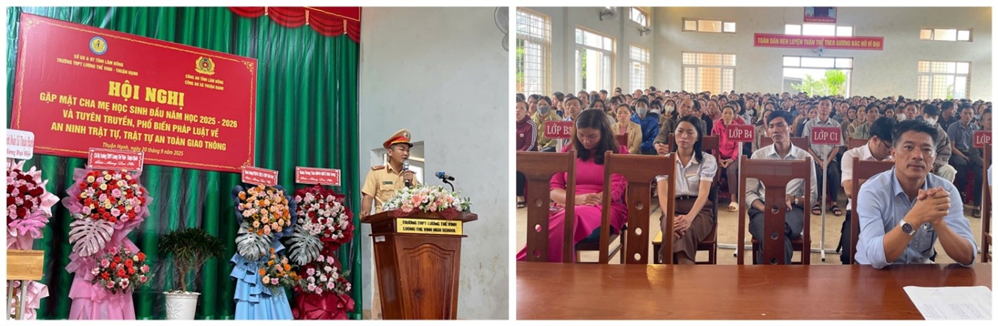 Tìm kiếm thông tin Chọn Tin mới Giới thiệu --Giới thiệu chung --Lịch sử phát triển --Lãnh đạo Công an tỉnh Chỉ đạo - Điều hành --Của lãnh đạo Bộ Công an --Của Lãnh đạo Công an tỉnh Tin tức - Sự kiện --Hoạt động của Bộ Công an --Hoạt động của Công an tỉnh --Hoạt động của Công an các đơn vị, địa phương --Các hoạt động an sinh xã hội --An ninh, trật tự Thông tin chuyên đề --Cảnh báo tội phạm --Chính trị - Xây dựng Đảng --Hướng dẫn tố giác tội phạm --Quản lý nhà nước về an ninh, trật tự --Đề án 06 - Chuyển đổi số - Dịch vụ công --Phòng cháy, chữa cháy và cứu nạn, cứu hộ --Bảo đảm trật tự, an toàn giao thông --Phong trào toàn dân bảo vệ ANTQ --Người tốt, việc tốt --Tổng hợp - Thống kê Đấu tranh phản bác Phổ biến, giáo dục pháp luật Phản ánh - Kiến nghị Thông báo Thông tin cần biết --Tuyển chọn công dân vào CAND --Tuyển chọn lao động hợp đồng --Hướng dẫn xử lý vi phạm hành chính --Thông tin truy nã, truy tìm --Tuyển sinh Công an nhân dân Văn bản Liên hệ Tin Media Lịch tiếp công dân Tất cảTiêu đề bài viếtNội dung Tìm kiếm Tìm thấy : 18 bài viết Xử phạt 43,5 triệu đồng nhóm thanh niên có hành vi đua xe  19:00 20/09/2025 |   92 Ngày 20/9, Đội CSGT đường bộ số 6 - Đức An, thuộc Phòng CSGT Công an tỉnh Lâm Đồng cho biết, đơn vị vừa phối hợp với Công an xã Trường Xuân xử phạt hành chính nhóm thanh niên về hành vi đua xe trái phép trên Tỉnh lộ 686. CSGT Lâm Đồng tuyên truyền phổ biến pháp luật về giao thông cho phụ huynh học sinh  17:00 20/09/2025 |   114 Nhằm bảo đảm trật tự an toàn giao thông, phòng ngừa xảy ra tai nạn giao thông liên quan đến các em học sinh. Ngày 20/9, Đội Cảnh sát giao thông đường bộ số 6 - Đức An, thuộc Phòng CSGT Công an tỉnh Lâm Đồng phối hợp với Công an xã Thuận Hạnh và Ban Giám hiệu trường THPT Lương Thế Vinh – Thuận Hạnh tổ chức hội nghị gặp mặt cha mẹ học sinh đầu năm học 2025 – 2026 và tuyên truyền pháp luật về an ninh trật tự, trật tự an toàn giao thông cho 570 phụ huynh học sinh của nhà trường. CSGT tổ chức tuyên truyền pháp luật về an toàn giao thông cho hơn 1100 học sinh, giáo viên trên địa bàn xã Nhân Cơ  10:03 09/09/2025 |   282 Ngày 8/9, Đội Cảnh sát giao thông đường bộ số 5 - Nam Gia Nghĩa, thuộc Phòng CSGT Công an tỉnh Lâm Đồng đã phối hợp với Công an xã Nhân Cơ và Công ty Honda Tiến Phát tổ chức tổ chức tuyên truyền pháp luật về an toàn giao thông cho hơn 500 học sinh, giáo viên của Trường THPT Trường Chinh, xã Nhân Cơ. CSGT Lâm Đồng tuyên truyền và tổ chức ký cam kết bảo đảm an toàn giao thông cho hơn 100 lái xe, chủ doanh nghiệp vận tải  12:04 06/09/2025 |   295 Ngày 5/9, Phòng Cảnh sát giao thông (CSGT) Công an tỉnh Lâm Đồng tổ chức hội nghị tuyên truyền, ký cam kết chấp hành pháp luật về an toàn giao thông (ATGT) cho hơn 100 lái xe, doanh nghiệp kinh doanh vận tải hàng hóa và hành khách trên địa bàn. Dự và chỉ đạo hội nghị có Đại tá Nguyễn Tường Vũ – Phó Giám đốc Công an tỉnh; Tham dự hội nghị còn có đại diện Ủy ban MTTQ Việt Nam tỉnh, lãnh đạo, cán bộ chiến sĩ phòng CSGT . Phòng CSGT tổ chức tuyên truyền pháp luật về TTATGT cho nhân viên Công ty Phương Trang - FUTA Buslines  11:39 26/08/2025 |   348 Thực hiện kế hoạch công tác năm 2025, nhằm nâng cao ý thức chấp hành pháp luật về trật tự, an toàn giao thông cho đội ngũ lái xe và công nhân viên các doanh nghiệp kinh doanh vận tải, trong 02 ngày 24/8 - 25/8/2025, phòng Cảnh sát giao thông - Công an tỉnh Lâm Đồng đã phối hợp cùng Chi nhánh Công ty cổ phần xe khách Phương Trang - FUTA Buslines tại Đà Lạt tổ chức buổi tuyên truyền, phổ biến pháp luật về trật tự, an toàn giao thông cho hơn 200 lái xe, nhân viên phục vụ trên các tuyến xe khách của công ty. Phát hiện tàu bơm hút cát trái phép tại thôn Đa Mi, xã Đồng Kho  15:40 25/08/2025 |   639 Ngày 22/8/2025, trong quá trình tuần tra kiểm soát trên các tuyến đường thủy nội địa, Tổ công tác thuộc Đội Cảnh sát đường thủy số 2 - Phòng Cảnh sát giao thông - Công an tỉnh Lâm Đồng do đồng chí Trung tá Võ Ngọc Linh – Đội trưởng làm Tổ trưởng đã phát hiện một vụ việc vi phạm liên quan đến hoạt động khai thác cát trái phép tại khu vực thôn Đa Mi, xã Đồng Kho, tỉnh Lâm Đồng. Khen thưởng đột xuất Công an xã Đạ Tẻh vì thành tích xuất sắc trong truy bắt nhóm đối tượng trộm cắp manh động  23:47 21/08/2025 |   1008 Ngày 20/8/2025, lãnh đạo Đảng ủy, UBND xã Đạ Tẻh đã tổ chức thăm hỏi, động viên và khen thưởng đột xuất lực lượng Công an xã vì thành tích xuất sắc trong đấu tranh phòng, chống tội phạm, góp phần đảm bảo an ninh, trật tự địa bàn, đúng vào dịp kỷ niệm 80 năm Ngày truyền thống lực lượng Công an nhân dân Việt Nam (19/8/1945 – 19/8/2025). Công an tỉnh Lâm Đồng tổ chức tập huấn nghiệp vụ công tác đăng ký xe trong toàn lực lượng  11:33 21/08/2025 |   587 Thực hiện kế hoạch công tác năm