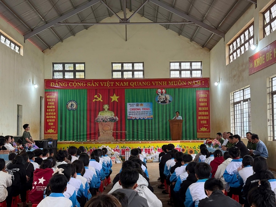 Tìm kiếm thông tin Chọn Tin mới Giới thiệu --Giới thiệu chung --Lịch sử phát triển --Lãnh đạo Công an tỉnh Chỉ đạo - Điều hành --Của lãnh đạo Bộ Công an --Của Lãnh đạo Công an tỉnh Tin tức - Sự kiện --Hoạt động của Bộ Công an --Hoạt động của Công an tỉnh --Hoạt động của Công an các đơn vị, địa phương --Các hoạt động an sinh xã hội --An ninh, trật tự Thông tin chuyên đề --Cảnh báo tội phạm --Chính trị - Xây dựng Đảng --Hướng dẫn tố giác tội phạm --Quản lý nhà nước về an ninh, trật tự --Đề án 06 - Chuyển đổi số - Dịch vụ công --Phòng cháy, chữa cháy và cứu nạn, cứu hộ --Bảo đảm trật tự, an toàn giao thông --Phong trào toàn dân bảo vệ ANTQ --Người tốt, việc tốt --Tổng hợp - Thống kê Đấu tranh phản bác Phổ biến, giáo dục pháp luật Phản ánh - Kiến nghị Thông báo Thông tin cần biết --Tuyển chọn công dân vào CAND --Tuyển chọn lao động hợp đồng --Hướng dẫn xử lý vi phạm hành chính --Thông tin truy nã, truy tìm --Tuyển sinh Công an nhân dân Văn bản Liên hệ Tin Media Lịch tiếp công dân Tất cảTiêu đề bài viếtNội dung Tìm kiếm Tìm thấy : 5 bài viết Tổ chức tuyên truyền, phổ biến giáo dục pháp luật cho phật tử và học sinh trên địa bàn đặc khu Phú Quý  13:46 01/09/2025 |   219 Hướng tới chào mừng kỷ niệm 80 năm Cách mạng Tháng Tám thành công (19/8/1945 - 19/8/2025); 80 năm Ngày truyền thống Công an nhân dân; 80 năm Quốc khánh nước Cộng hòa xã hội chủ nghĩa Việt Nam (02/9/1945 - 02/9/2025), đồng thời nhằm nâng cao ý thức chấp hành pháp luật, trang bị kiến thức cứu nạn, cứu hộ, Công an đặc khu Phú Quý đã phối hợp cùng Ban Trị sự Chùa Liên Hoa và Ban Giám hiệu Trường THPT Ngô Quyền tổ chức buổi tuyên truyền, phổ biến, giáo dục pháp luật với các chuyên đề về an toàn giao thông, phòng cháy chữa cháy, phòng chống ma túy và thuốc lá điện tử cho bà con phật tử và học sinh trên địa bàn. Buổi tuyên truyền đã thu hút sự tham gia của hơn 90 tín đồ phật tử và 318 học sinh. Công an xã Tuy Đức tuyên truyền pháp luật, tặng quà cho học sinh đầu năm học mới  14:02 26/08/2025 |   740 Nhằm tạo điều kiện thuận lợi cho các em học sinh bước vào năm học mới 2025 – 2026 với tinh thần học tập hăng say, Công an xã Tuy Đức đã phối hợp với các Trường Trung học cơ sở trên địa bàn tổ chức buổi tuyên truyền, phổ biến giáo dục pháp luật và trao tặng quà cho học sinh có hoàn cảnh khó khăn. Công an xã Đạ Huoai 2 phối hợp tổ chức tuyên truyền pháp luật tại Trường THPT Đạm Ri  13:34 21/08/2025 |   119 Sáng ngày 20/8/2025, Công an xã Đạ Huoai 2 phối hợp với Trường THPT Đạm Ri tổ chức buổi tuyên truyền, phổ biến giáo dục pháp luật cho hơn 600 người là giáo viên, nhân viên và học sinh toàn trường. Công an xã Đức Trọng phối hợp tuyên truyền, phổ biến giáo dục pháp luật trong trường học  17:00 18/08/2025 |   160 Nhằm nâng cao nhận thức pháp luật, ý thức tuân thủ các quy định pháp luật trong lứa tuổi học sinh, đặc biệt là thanh thiếu niên – đối tượng có nhiều nguy cơ bị tác động bởi môi trường xã hội và không gian mạng, sáng ngày 15/8/2025, Công an xã Đức Trọng phối hợp với Trường THPT Lương Thế Vinh tổ chức buổi tuyên truyền, phổ biến, giáo dục pháp luật năm học 2025. Phòng Cảnh sát giao thông Công an tỉnh Lâm Đồng phối hợp Giáo hội Phật giáo Việt Nam tỉnh tổ chức tuyên truyền an toàn giao thông cho tăng ni, phật tử tại Chùa Thiện Tâm  15:08 13/07/2025 |   324 Nhằm nâng cao nhận thức và ý thức chấp hành pháp luật về trật tự, an toàn giao thông (TTATGT) trong cộng đồng tôn giáo, đặc biệt là trong giới tăng ni, phật tử, ngày 12/7/2025, Phòng Cảnh sát giao thông (CSGT) Công an tỉnh Lâm Đồng đã phối hợp với Giáo hội Phật giáo Việt Nam tỉnh tổ chức buổi tuyên truyền, phổ biến, giáo dục pháp luật về TTATGT tại Chùa Thiện Tâm, xã Tân Minh, tỉnh Lâm Đồng. Trang 1