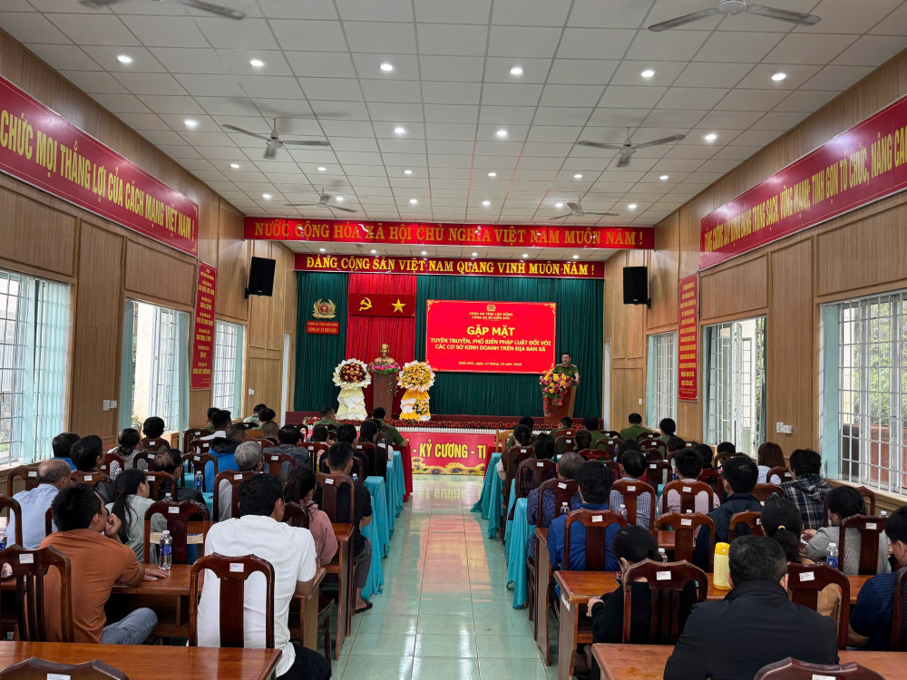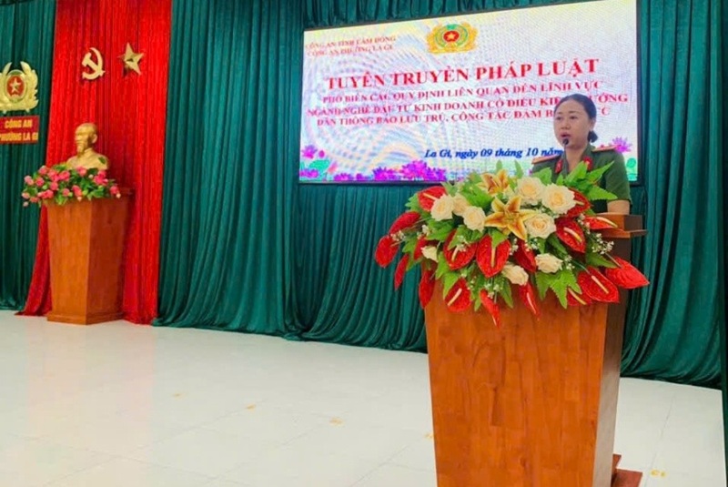 Tìm kiếm thông tin Chọn Tin mới Giới thiệu --Giới thiệu chung --Lịch sử phát triển --Lãnh đạo Công an tỉnh Chỉ đạo - Điều hành --Của lãnh đạo Bộ Công an --Của Lãnh đạo Công an tỉnh Tin tức - Sự kiện --Hoạt động của Bộ Công an --Hoạt động của Công an tỉnh --Hoạt động của Công an các đơn vị, địa phương --Các hoạt động an sinh xã hội --An ninh, trật tự Thông tin chuyên đề --Cảnh báo tội phạm --Chính trị - Xây dựng Đảng --Hướng dẫn tố giác tội phạm --Quản lý nhà nước về an ninh, trật tự --Đề án 06 - Chuyển đổi số - Dịch vụ công --Phòng cháy, chữa cháy và cứu nạn, cứu hộ --Bảo đảm trật tự, an toàn giao thông --Phong trào toàn dân bảo vệ ANTQ --Người tốt, việc tốt --Tổng hợp - Thống kê Đấu tranh phản bác Phổ biến, giáo dục pháp luật Phản ánh - Kiến nghị Thông báo Thông tin cần biết --Tuyển chọn công dân vào CAND --Tuyển chọn lao động hợp đồng --Hướng dẫn xử lý vi phạm hành chính --Thông tin truy nã, truy tìm --Tuyển sinh Công an nhân dân Văn bản Liên hệ Tin Media Lịch tiếp công dân Tất cảTiêu đề bài viếtNội dung Tìm kiếm Tìm thấy : 77 bài viết Công an xã Kiến Đức tăng cường tuyên truyền pháp luật cho các cơ sở kinh doanh có điều kiện về an ninh, trật tự  17:12 14/10/2025 |   12 Ngày 12/10/2025, Công an xã Kiến Đức, tỉnh Lâm Đồng tổ chức buổi gặp mặt, tuyên truyền, phổ biến, giáo dục pháp luật cho các cơ sở kinh doanh ngành nghề đầu tư kinh doanh có điều kiện về an ninh, trật tự (ANTT) và các loại hình dịch vụ dễ phát sinh tệ nạn xã hội trên địa bàn. Công an xã Trà Tân phối hợp tuyên truyền pháp luật giao thông đường bộ và phòng, chống ma tuý cho công nhân Khu công nghiệp Nam Hà  16:28 13/10/2025 |   89 Nhằm nâng cao nhận thức, ý thức chấp hành pháp luật của công nhân trong khu công nghiệp, góp phần bảo đảm trật tự an toàn giao thông và phòng ngừa tệ nạn ma túy, chiều ngày 10/10/2025, Công an xã Trà Tân phối hợp Tổ Cảnh sát giao thông khu vực Đức Linh và Ban Quản lý Khu công nghiệp Nam Hà tổ chức buổi tuyên truyền, phổ biến pháp luật về trật tự an toàn giao thông đường bộ và phòng, chống ma túy cho hơn 3.000 công nhân đang làm việc tại Khu công nghiệp Nam Hà. Công an phường La Gi tổ chức tuyên truyền pháp luật liên quan đến lĩnh vực ngành nghề đầu tư kinh doanh có điều kiện  10:21 13/10/2025 |   77 Trong hai ngày 09 và 10/10/2025, Công an phường La Gi đã tổ chức hội nghị tuyên truyền pháp luật đối với 113 cơ sở ngành nghề đầu tư kinh doanh có điều kiện về ANTT trên địa bàn phường. Hội nghị nhằm tăng cường công tác quản lý đối với ngành nghề đầu tư kinh doanh có điều kiện về an ninh trật tự, nâng cao trách nhiệm của chủ cơ sở kinh doanh; đồng thời lắng nghe những tâm tư, nguyện vọng, tháo gỡ khó khăn, vướng mắc trong quá trình kinh doanh, bảo đảm các cơ sở kinh doanh hoạt động đúng quy định của pháp luật, cũng như phòng ngừa vi phạm pháp luật tại các cơ sở. Công an các phường, xã tăng cường tuyên truyền pháp luật trong trường học, góp phần xây dựng môi trường học đường an toàn, lành mạnh  10:00 13/10/2025 |   217 Trong thời gian qua, Công an các phường, xã trên địa bàn tỉnh Lâm Đồng đã chủ động phối hợp với các trường học triển khai nhiều hoạt động tuyên truyền, phổ biến, giáo dục pháp luật với nội dung phong phú, hình thức đa dạng. Các chuyên đề tập trung vào những vấn đề thiết thực, gần gũi với lứa tuổi học sinh như: an toàn giao thông, phòng chống ma túy, bạo lực học đường, an ninh mạng, kỹ năng phòng cháy chữa cháy… Những hoạt động này không chỉ giúp học sinh trang bị kiến thức pháp luật, kỹ năng sống mà còn góp phần xây dựng môi trường học đường an toàn, lành mạnh, văn minh. Công an xã Thuận An tuyên truyền pháp luật cho các cơ sở sửa chữa xe, phòng ngừa đua xe trái phép  08:03 13/10/2025 |   113 Trong thời gian qua, lực lượng Công an xã Thuận An đã đồng loạt ra quân kiểm tra, tuyên truyền pháp luật cho các tiệm sửa xe, cửa hàng kinh doanh phụ tùng, linh kiện xe gắn máy trên địa bàn. Qua đó, yêu cầu các cơ sở chấp hành nghiêm quy định của pháp luật, không thực hiện hành vi “độ, chế” xe mô tô, xe gắn máy làm thay đổi kết cấu, công suất, hình dáng phương tiện, gây tiếng ồn lớn và nguy cơ mất an toàn giao thông. Công an xã Tân Hải tăng cường tuyên truyền pháp luật về an ninh, trật tự cho doanh nghiệp trên địa bàn  14:13 12/10/2025 |   59 Vừa qua, tại Hội trường Ủy ban nhân dân xã, Công an xã Tân Hải đã tổ chức buổi tuyên truyền, phổ biến, giáo dục pháp luật về an ninh, trật tự (ANTT) cho hơn 80 cơ sở kinh doanh có điều kiện về ANTT trên địa bàn. Phòng Kỹ thuật hình sự - Công an tỉnh Lâm Đồng tuyên truyền pháp luật và thực hiện chương trình “Bình dân học vụ số”  21:27 11/10/2025 |   109 Phòng Kỹ thuật hình sự tổ chức chương trình tuyên truyền pháp luật về phòng, chố