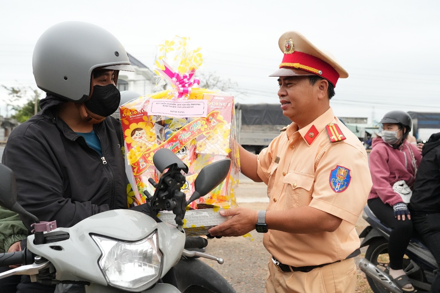 Song song đó, đơn vị còn tuyên truyền, nhắc nhở người dân chấp hành nghiêm các quy định của pháp luật về giao thông đường bộ; điều khiển phương tiện đúng tốc độ, giữ khoảng cách an toàn, không sử dụng rượu bia khi tham gia giao thông; đồng thời chúc bà con có chuyến đi thuận lợi, an toàn và đón Tết đầm ấm bên gia đình.