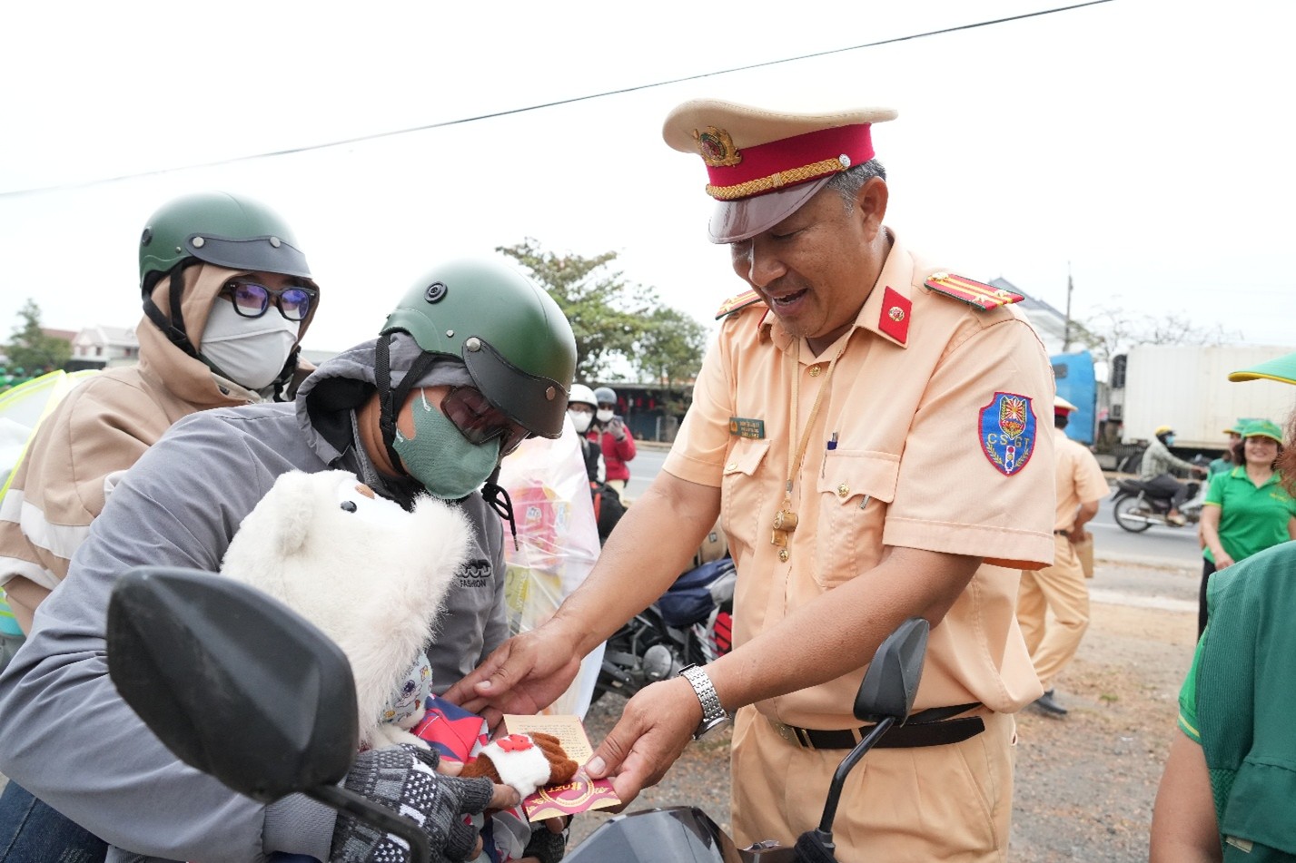 Chia sẻ tại chương trình, Trung tá Vũ Mạnh Hà, Đội trưởng Đội CSGT đường bộ số 3 – Phòng CSGT Công an tỉnh Lâm Đồng cho biết, trong cao điểm bảo đảm trật tự, an toàn giao thông trước, trong và sau Tết Bính Ngọ 2026, đơn vị đã tổ chức tăng cường tuần tra, kiểm soát trên các tuyến đường của địa bàn phụ trách nhằm bảo đảm an toàn cho người dân khi tham gia giao thông. Bên cạnh việc triển khai các mặt công tác chuyên môn, lực lượng CSGT mong muốn đồng hành, hỗ trợ bà con bằng những việc làm thiết thực trên hành trình dài về quê đón Tết.