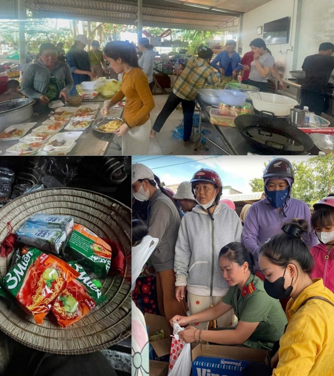 Bên cạnh đó, tinh thần tương thân tương ái của nhân dân trên địa bàn lại càng được phát huy mạnh mẽ. Nhiều hộ dân và doanh nghiệp đã chủ động mang nhu yếu phẩm như mì tôm, nước uống, đồ ăn nhanh đến hỗ trợ bà con trong vùng lũ. Nhiều nhóm thiện nguyện cũng đã đồng hành cùng lực lượng Công an địa phương đến các khu vực ngập lụt, trao tận tay từng suất ăn, với mong muốn chia sẻ phần nào khó khăn, giúp người dân sớm ổn định cuộc sống.