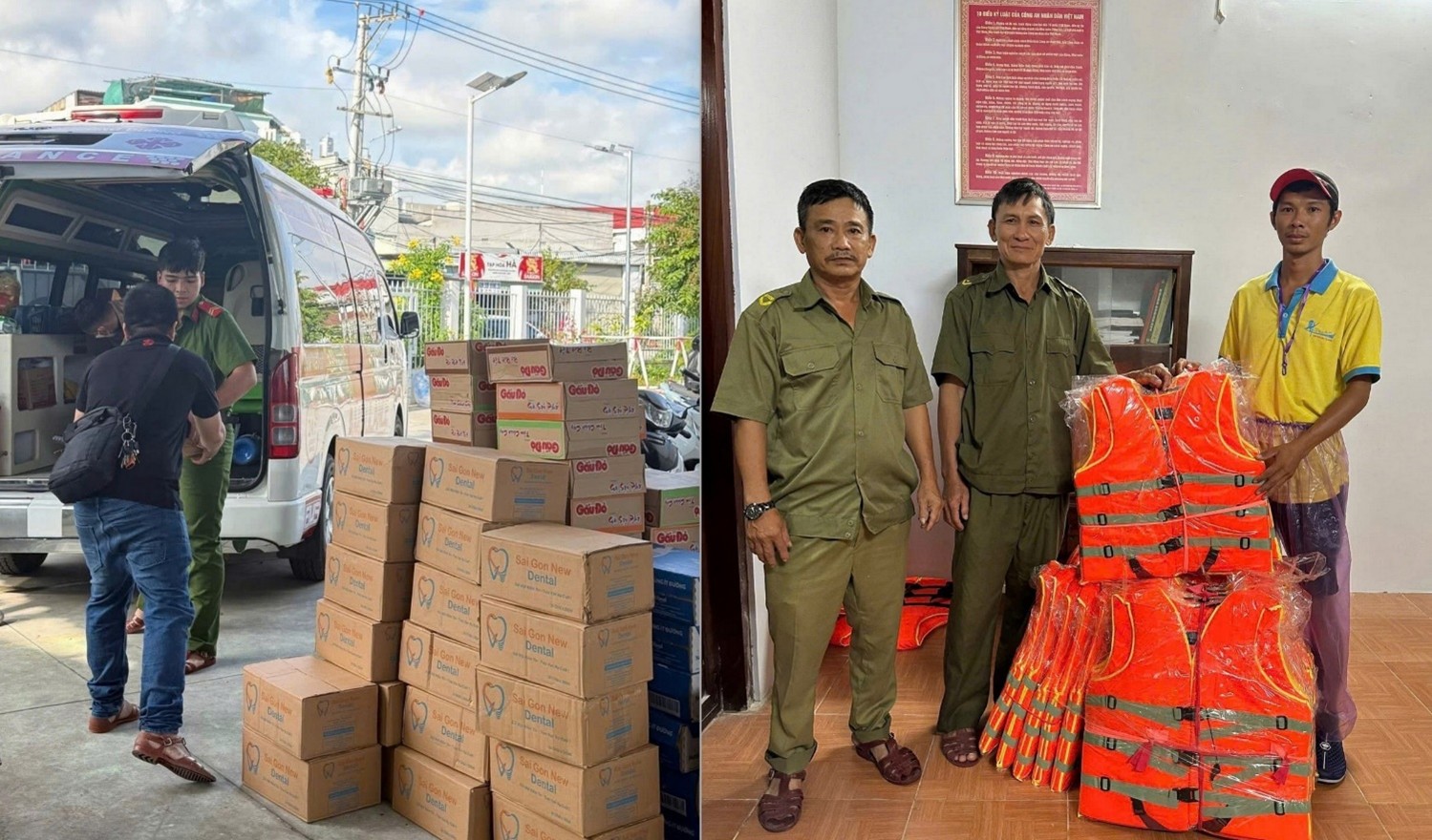 Nhiều hộ dân, nhà hảo tâm đã gửi nhu yếu phẩm nhờ lực lượng Công an chuyển đến tận tay người bị ảnh hưởng bởi mưa lũ: