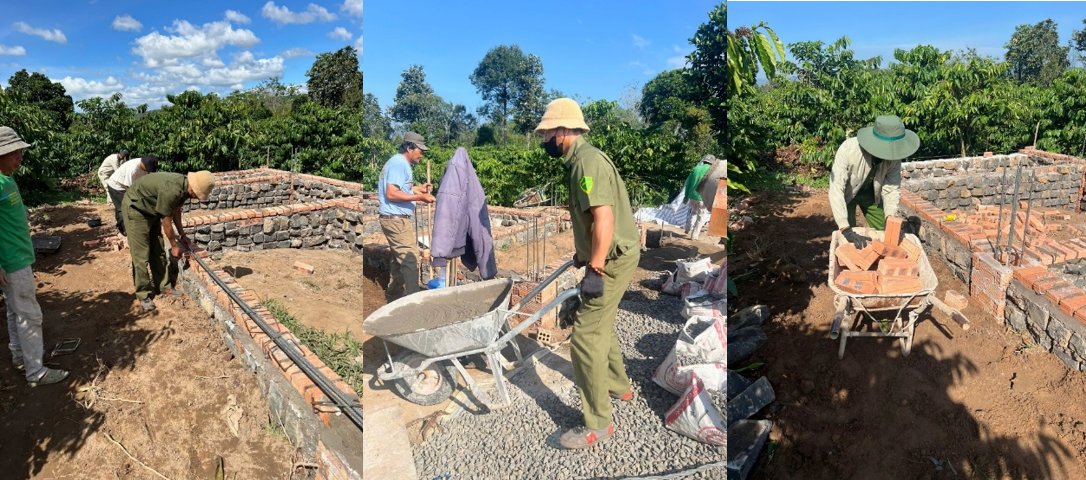 Trước hoàn cảnh đó, Công an xã Tân Hà Lâm Hà đã chủ động phối hợp Phòng Công tác chính trị phân công lực lượng trực tiếp hỗ trợ gia đình ông Ngôn xây dựng lại nhà ở. Không quản ngại nắng mưa, mỗi ngày cán bộ, chiến sĩ đều có mặt từ sớm tại công trường, trực tiếp tham gia các phần việc như vận chuyển vật liệu, đào móng, dựng khung, phụ hồ… góp phần đẩy nhanh tiến độ thi công và giảm bớt chi phí nhân công cho gia đình.