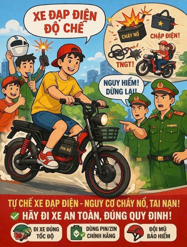 Hiện nay, xe đạp điện là phương tiện quen thuộc của nhiều học sinh nhờ sự tiện lợi và dễ sử dụng. Tuy nhiên, bên cạnh những lợi ích đó, việc tự ý độ chế xe đạp điện đang tiềm ẩn nhiều nguy cơ nguy hiểm. Xe đạp điện thông thường có tốc độ tối đa khoảng 25–30 km/h, nhưng nhiều người đã can thiệp vào bộ điều tốc, thay pin công suất cao hoặc thay đổi động cơ để nâng tốc độ lên 50–70 km/h, thậm chí hơn 100 km/h.