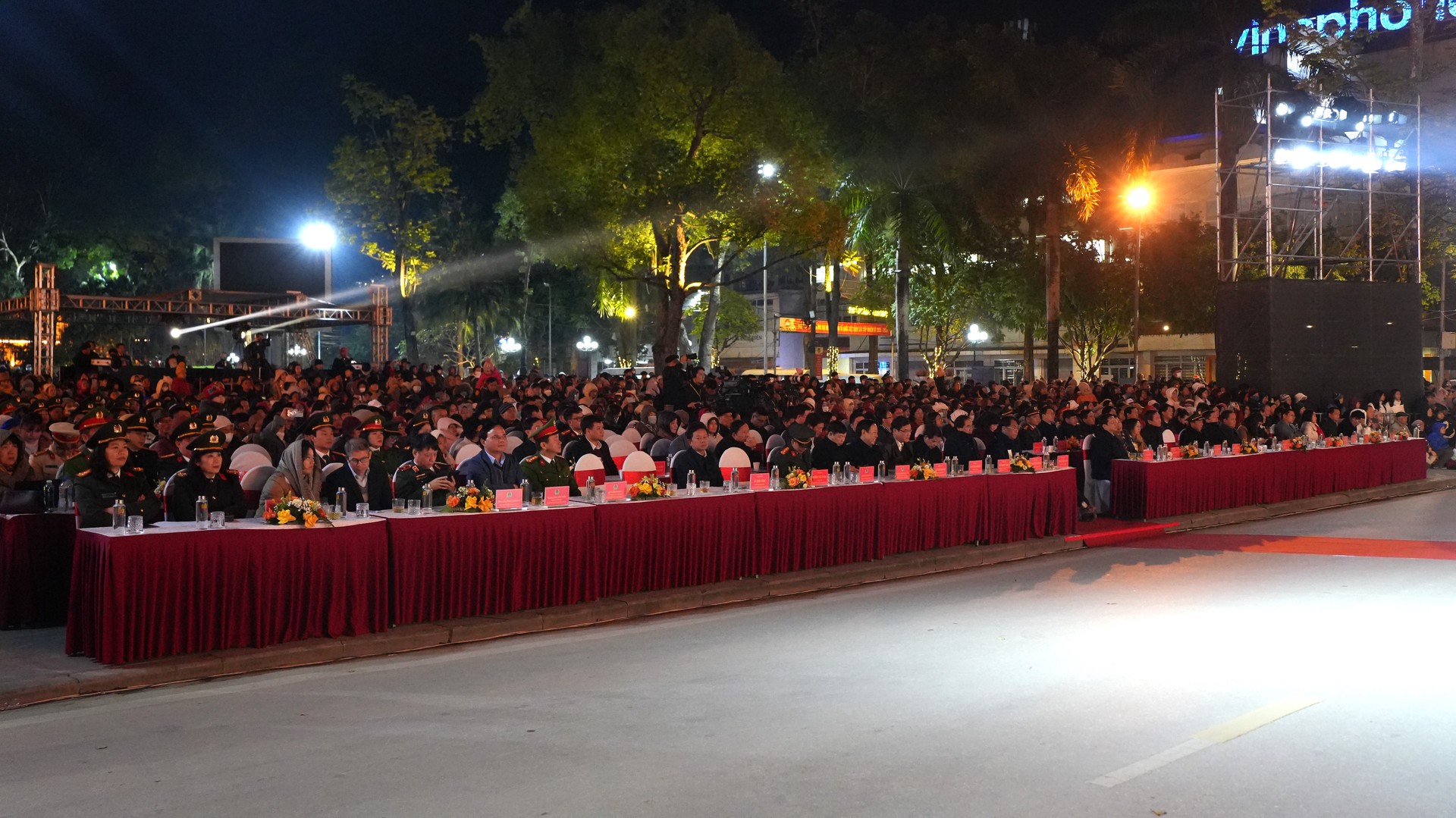 Đông đảo người dân theo dõi chương trình nghệ thuật tại Khu tượng đài Chủ tịch Hồ Chí Minh.