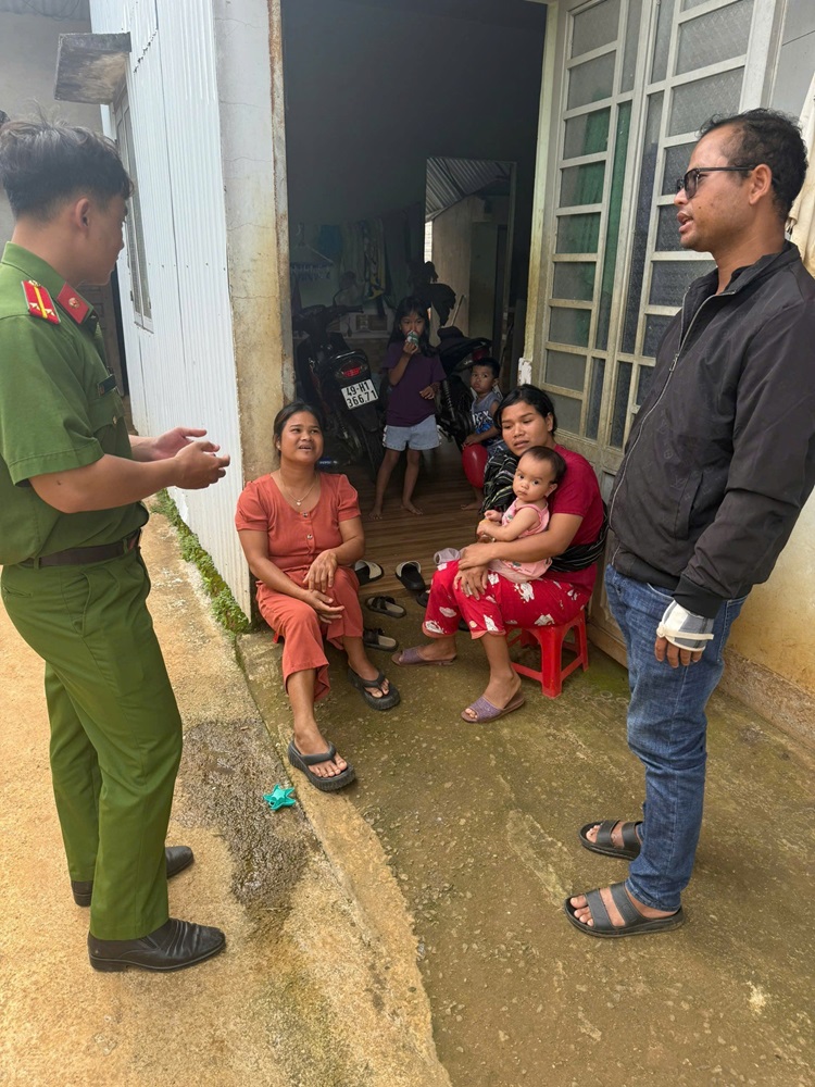 Tại gia đình ông K’Mười, Trung úy Hà vừa hỏi thăm tình hình an ninh trật tự, vừa nhắc nhở đảm bảo an toàn điện, phòng cháy chữa cháy trong sinh hoạt và sản xuất. “Các chú công an giờ gần gũi lắm. Thấy các chú về thôn thường xuyên, bà con yên tâm hơn” – ông K’Mười nói.