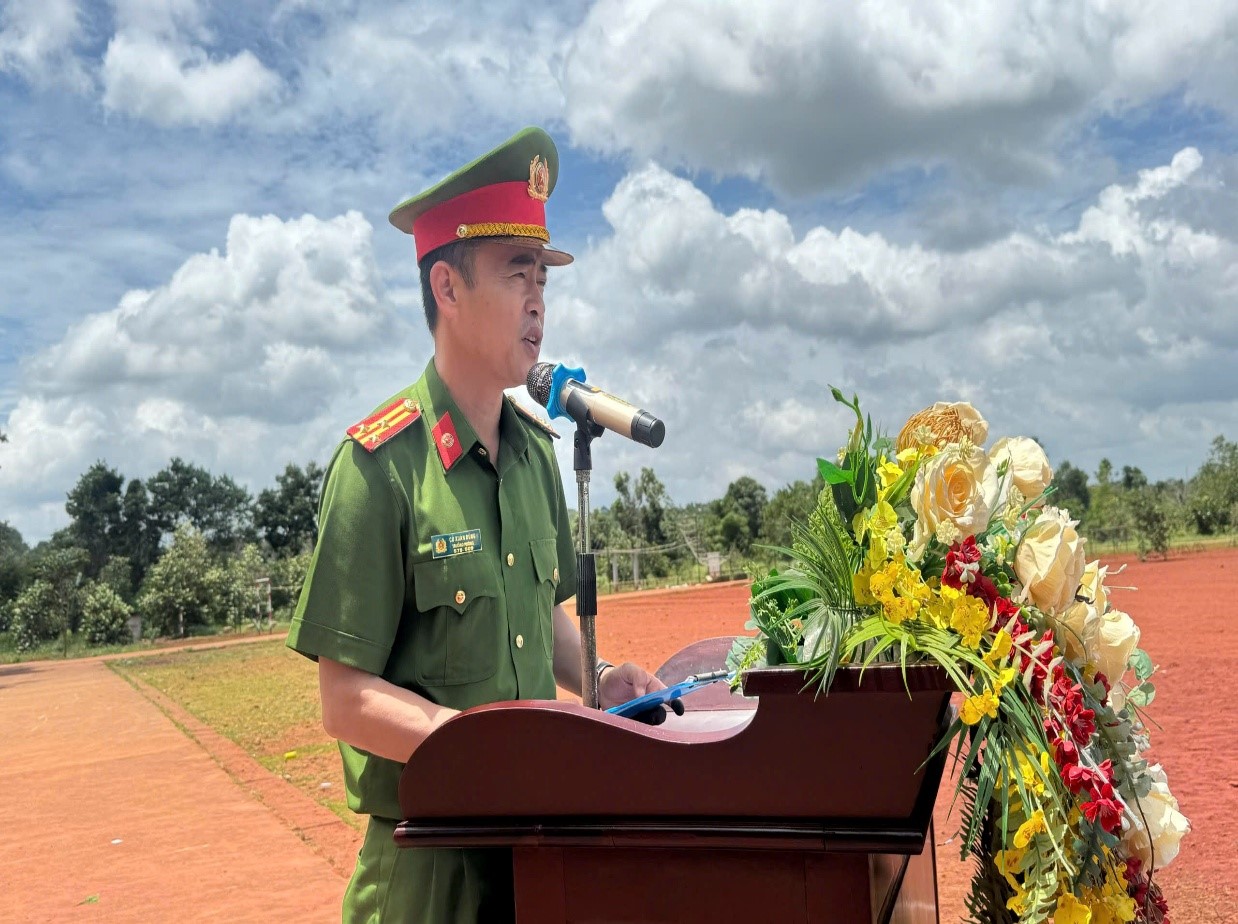 Đồng chí Thượng tá Nguyễn Văn Thiêm, Phó Trưởng phòng CSCĐ phát biểu khai mạc chương trình báo cáo kết quả huấn luyện