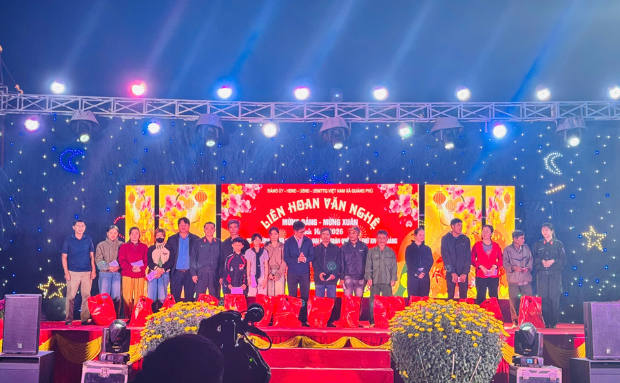 Tại đêm văn nghệ, đại diện hai đơn vị phối hợp Lãnh đạo địa phương trao tặng quà Tết cho các hộ gia đình đặc biệt khó khăn, góp phần mang đến mùa xuân ấm áp, nghĩa tình quân dân.