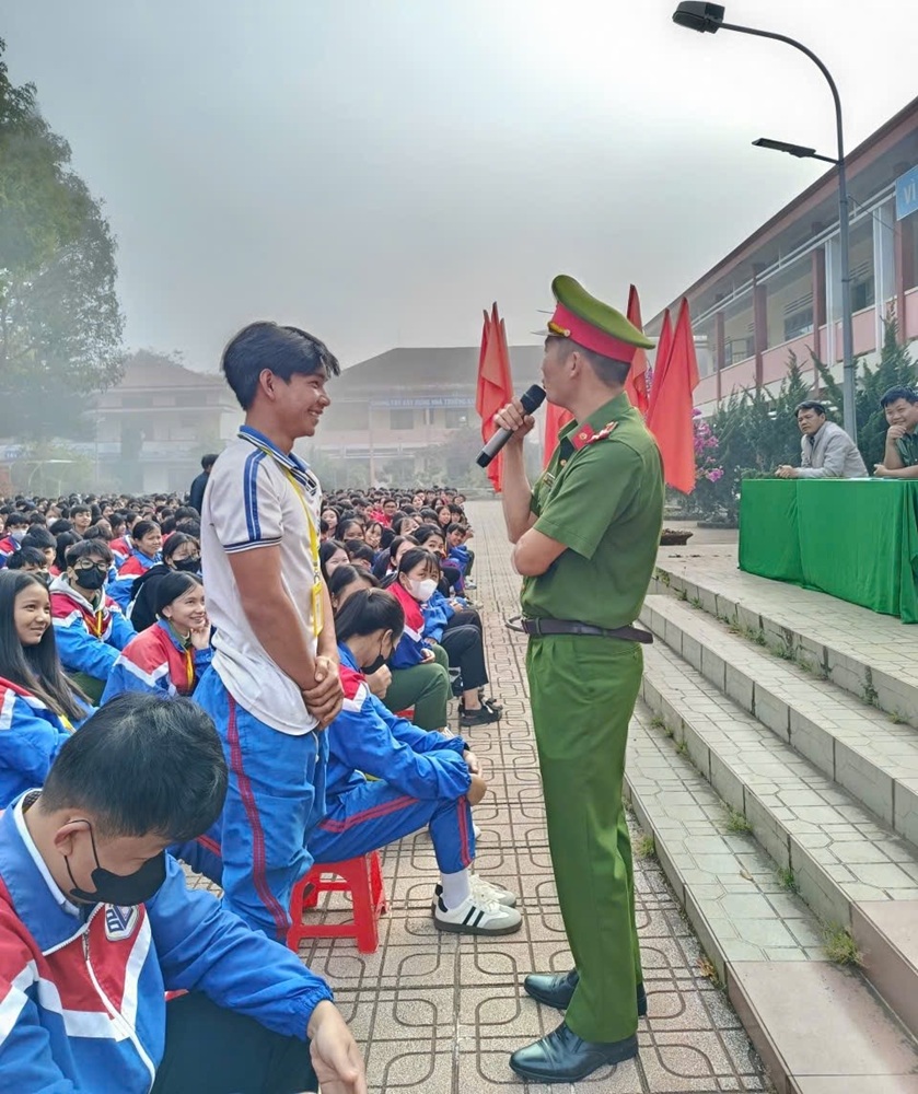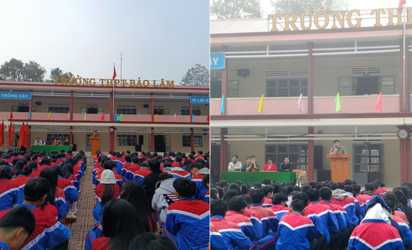 Tại buổi tuyên truyền, cán bộ Công an xã Bảo Lâm 1 đã tập trung phổ biến nhiều nội dung thiết thực, sát với tình hình thực tế hiện nay như: Luật Giao thông đường bộ, Luật An ninh mạng, phòng chống bạo lực học đường, các nguy cơ tiềm ẩn trên không gian mạng đối với lứa tuổi học sinh. Đồng thời, hướng dẫn các em kỹ năng nhận diện thủ đoạn của các đối tượng xấu, kỹ năng tự bảo vệ bản thân, không cung cấp thông tin cá nhân cho người lạ, không làm theo yêu cầu từ các tài khoản không rõ danh tính và chủ động thông báo cho gia đình, nhà trường hoặc cơ quan Công an khi phát hiện dấu hiệu bất thường.