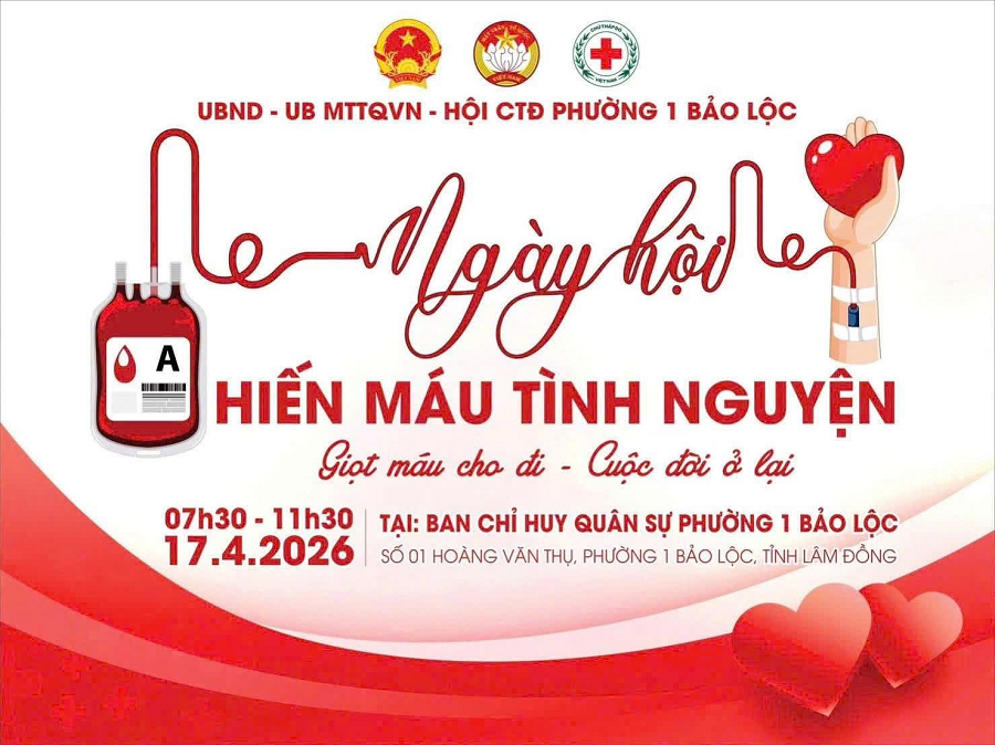 Biểu trưng Ngày hội hiến máu tình nguyện tại phường 1 Bảo Lộc