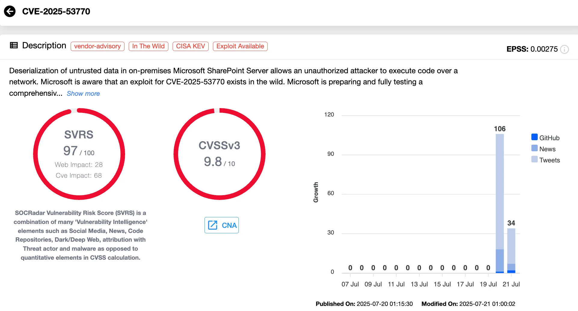 Bảng phân tích đánh giá mức độ nguy hiểm của lỗ hổng CVE-2025-53770