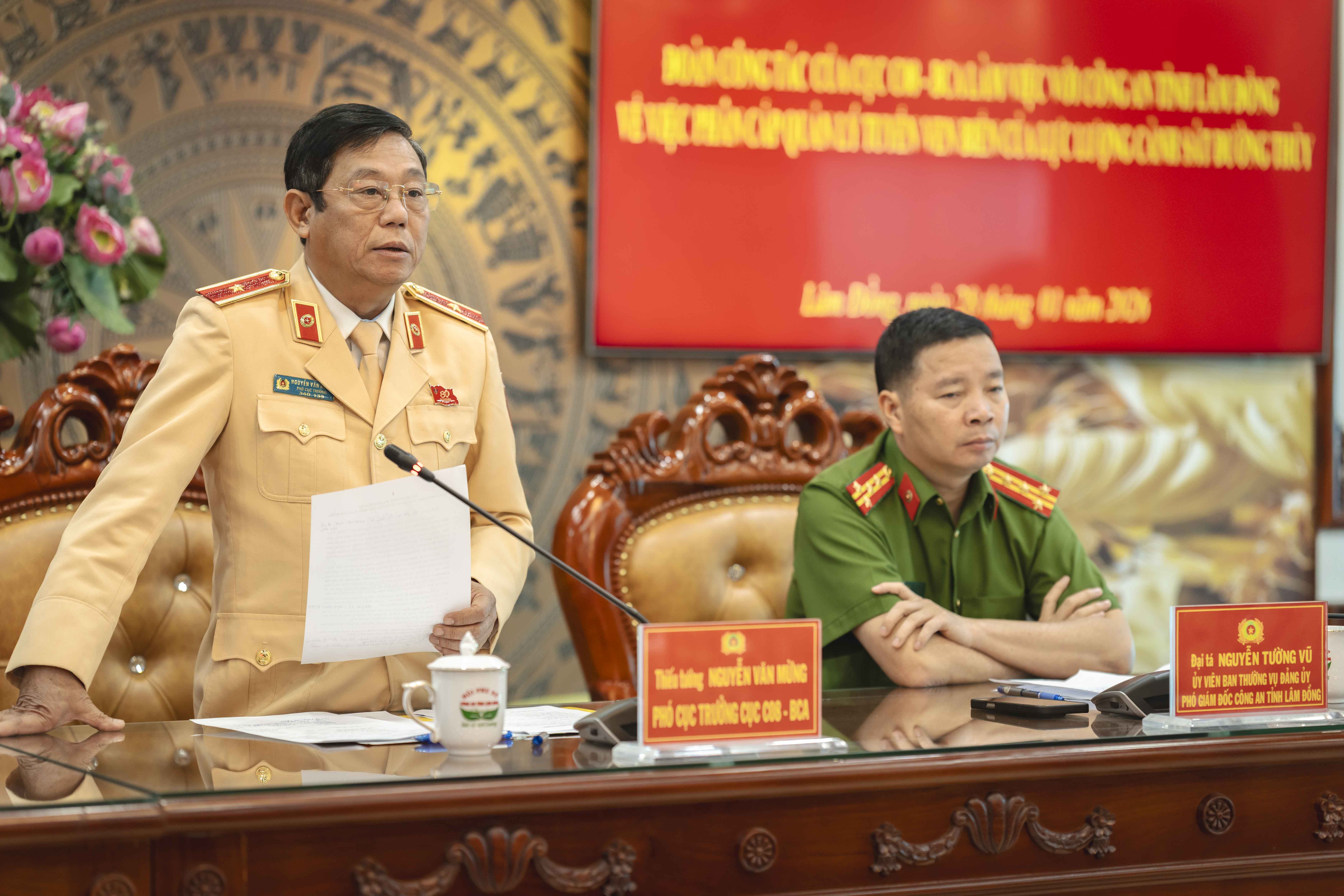 Thượng tá Nguyễn Văn Tiếp – Trưởng phòng CSGT Công an tỉnh Lâm Đồng báo cáo tại buổi làm việc
