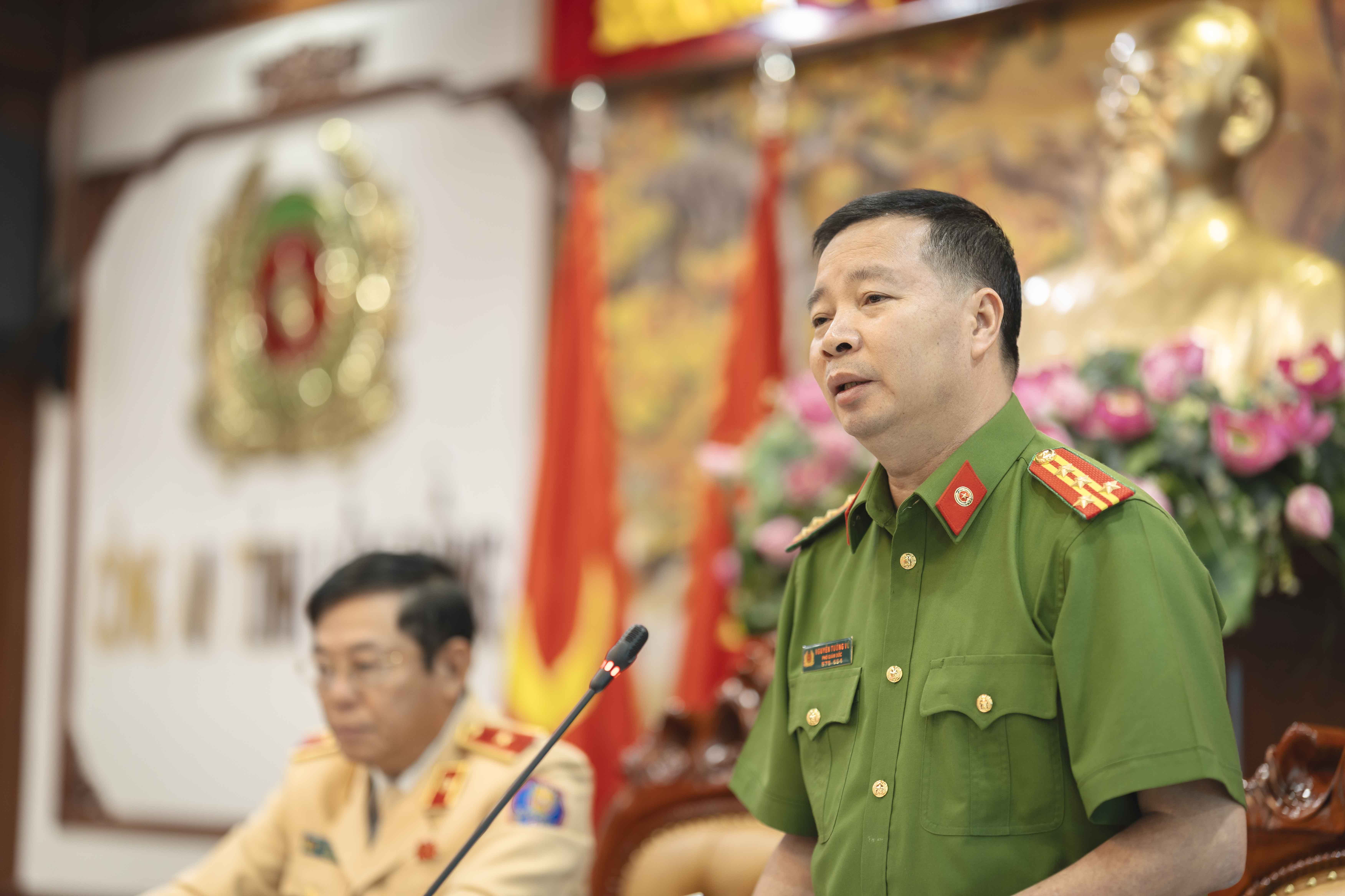 Thiếu tướng Nguyễn Văn Mừng - Phó Cục Trưởng Cục CSGT Bộ Công an phát biểu tại buổi làm việc