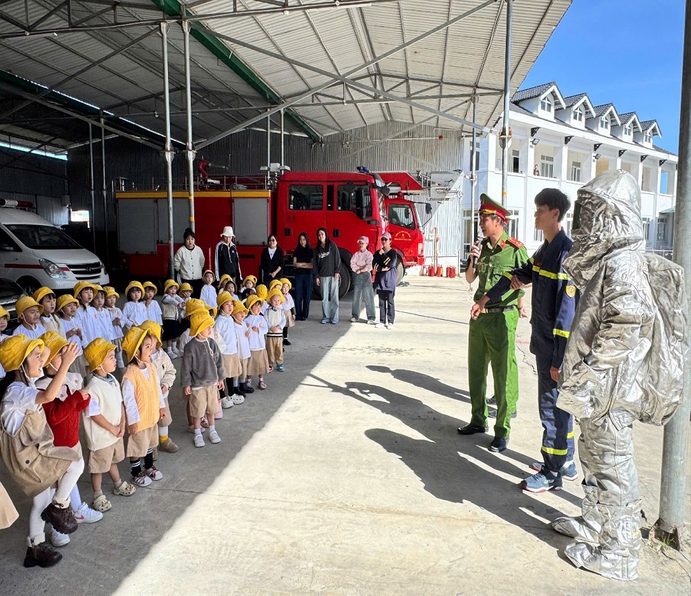 Đại diện Phòng Cảnh sát PCCC và CNCH chia sẻ: việc tuyên truyền, giáo dục kỹ năng phòng cháy chữa cháy nên được bắt đầu từ sớm, đặc biệt ở bậc mầm non – nơi các em bước đầu hình thành ý thức bảo vệ bản thân. Khi trẻ biết cách phản ứng đúng trước nguy hiểm, đó chính là nền tảng để xây dựng môi trường sống và học tập an toàn hơn.