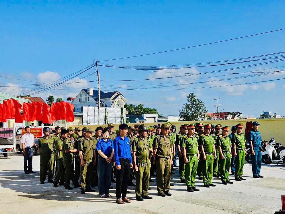 Lực lượng ANTT tham gia buổi ra quân tấn công trấn áp tội phạm trong đợt cao điểm.