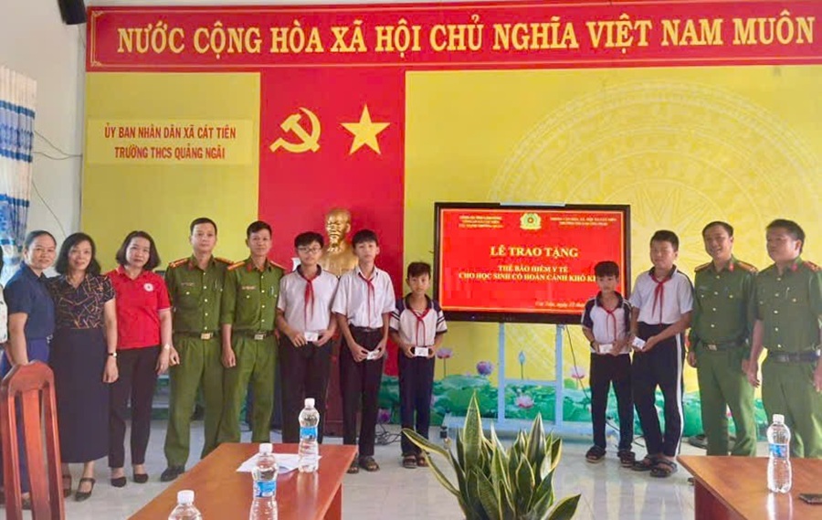 Tại chương trình, Chỉ huy cùng cán bộ, chiến sĩ Công an xã Cát Tiên đã trao tặng 10 thẻ Bảo hiểm y tế cho các em học sinh nghèo, có hoàn cảnh đặc biệt khó khăn. Mỗi phần quà tuy không lớn về giá trị vật chất, nhưng chứa đựng sự quan tâm, sẻ chia chân thành, thể hiện trách nhiệm và tình cảm của lực lượng Công an đối với cộng đồng, nhất là đối với thế hệ mầm non tương lai của quê hương.