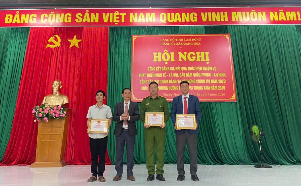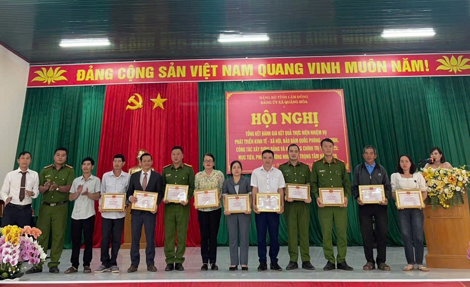 Tại hội nghị tổng kết, Chi bộ Công an xã Quảng Hòa được công nhận là tập thể hoàn thành xuất sắc nhiệm vụ; nhiều cá nhân tiêu biểu được các cấp khen thưởng vì có thành tích nổi bật trong công tác xây dựng Đảng, giữ gìn an ninh, trật tự và phục vụ Nhân dân. Đây không chỉ là sự ghi nhận xứng đáng mà còn là động lực để Chi bộ và mỗi đảng viên tiếp tục phấn đấu, rèn luyện và cống hiến.