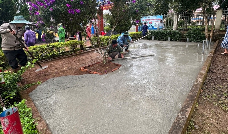 Công trình được Chi đoàn phối hợp cùng nhà trường và phụ huynh học sinh xây dựng, với mục tiêu tạo môi trường an toàn, thuận tiện trong việc đưa đón học sinh, góp phần bảo đảm trật tự an toàn giao thông khu vực cổng trường. Chi đoàn đã vận động đoàn viên và các mạnh thường quân hỗ trợ 4 tấn xi măng, 15 khối đá, 4 khối cát và nhiều ngày công lao động để hoàn thiện hạng mục sân, bãi đỗ xe và khu vực chờ.