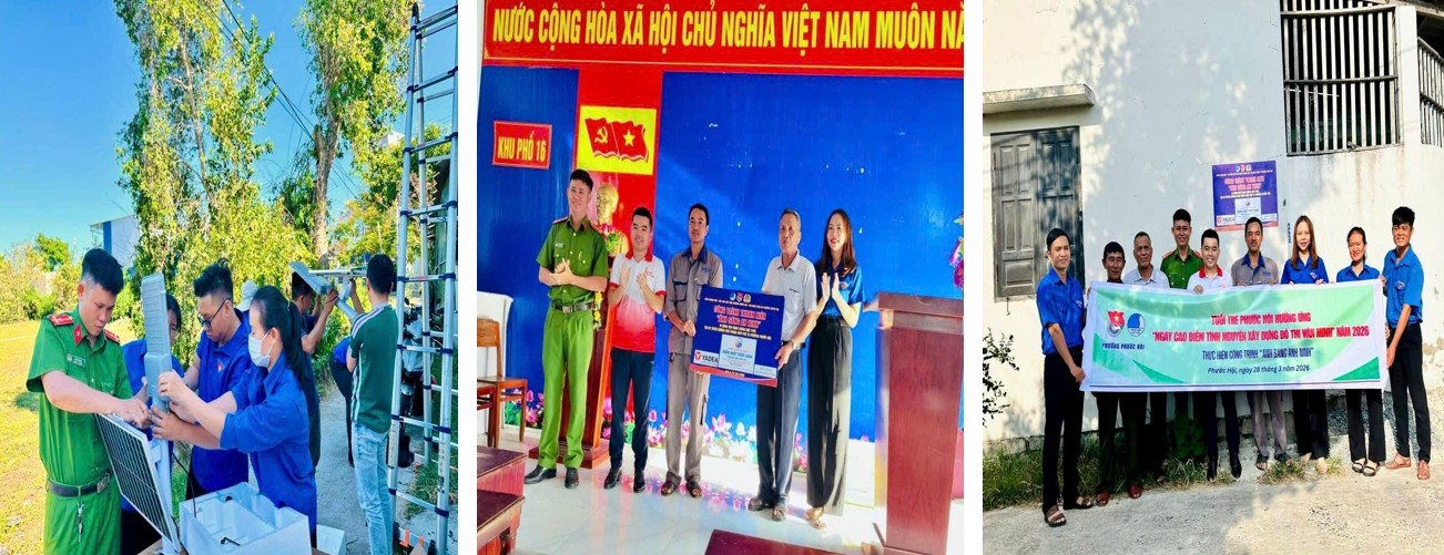 Ngày 28/3/2026, Ban Thường vụ Đoàn phường Phước Hội, Hội Liên hiệp Thanh niên Việt Nam phường cùng Chi đoàn Công an phường đã tổ chức ra quân lắp đặt hệ thống đèn năng lượng mặt trời tại các tuyến đường hẻm thuộc Khu phố 16, phường Phước Hội.