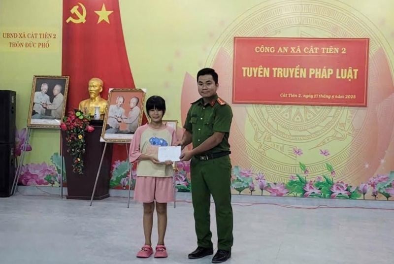 Trong khuôn khổ các hoạt động chào mừng Đại hội Đảng bộ các cấp tiến tới Đại hội đại biểu toàn quốc lần thứ XIV của Đảng, Chi đoàn Công an xã Cát Tiên 2 đã chủ động tham mưu Chi bộ Công an xã đăng ký thành lập mô hình “Chi đoàn Công an xã Cát Tiên 2, mỗi tuần một địa chỉ nhân đạo”.