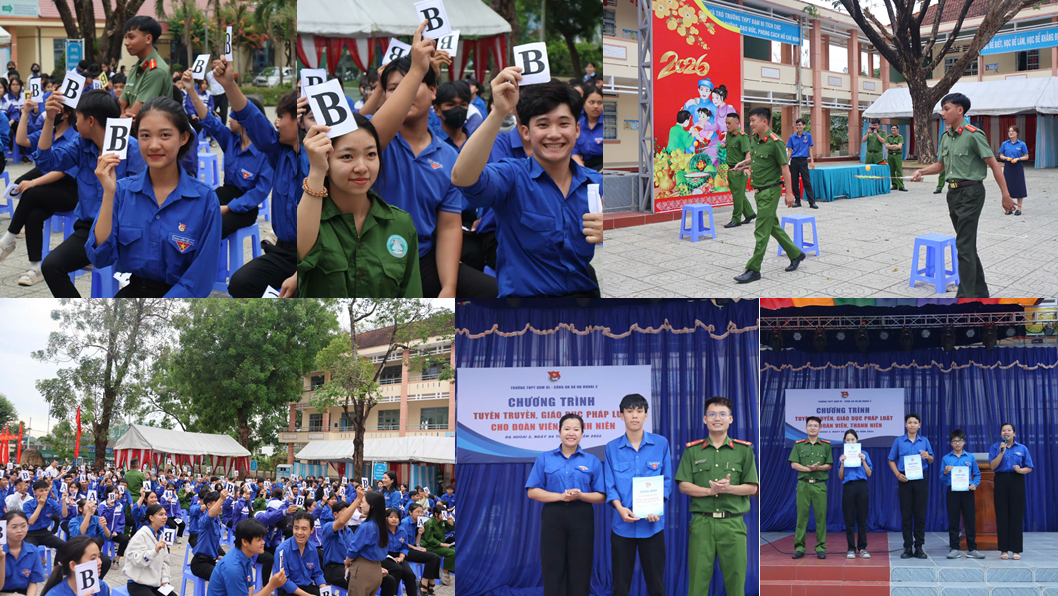 Tiếp nối chương trình, Đoàn Trường THPT Đạm Ri phối hợp với Chi đoàn Công an xã tổ chức cuộc thi tìm hiểu pháp luật dưới hình thức “Rung chuông vàng”. Cuộc thi diễn ra sôi nổi, hấp dẫn, tạo sân chơi lành mạnh để học sinh thể hiện kiến thức pháp luật, kỹ năng xử lý tình huống, qua đó góp phần nâng cao ý thức chấp hành pháp luật trong đoàn viên, thanh thiếu niên.