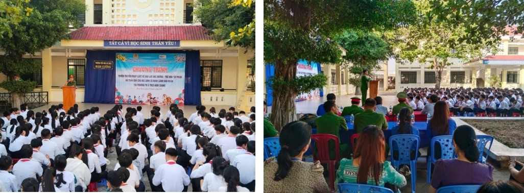 Chương trình được tổ chức với phương châm “Hiểu luật để bảo vệ mình - Hiểu luật để không vi phạm”, thu hút sự tham gia của khoảng 300 học sinh cùng tập thể giáo viên nhà trường. Tại đây, cán bộ Công an đã thông tin khái quát tình hình tội phạm liên quan đến nhóm tuổi từ 14 - 16 trên địa bàn; phân tích nguyên nhân, điều kiện phát sinh tội phạm; phổ biến các quy định pháp luật liên quan và hướng dẫn kỹ năng nhận diện, phòng vệ, xử lý tình huống trong thực tế.
