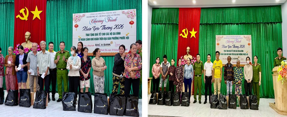 Tại chương trình, đại diện chỉ huy Công an phường, lãnh đạo Ngân hàng TMCP Bắc Á, Ban Chấp hành Đoàn phường, Chi hội Phụ nữ và Chi đoàn Thanh niên Công an phường đã trao tặng 50 phần quà gồm các nhu yếu phẩm thiết thực dịp Tết với tổng giá trị 15.000.000 đồng. Những phần quà tuy giá trị vật chất không lớn nhưng chứa đựng tình cảm, sự sẻ chia, động viên kịp thời, góp phần lan tỏa tinh thần nhân ái trong cộng đồng.