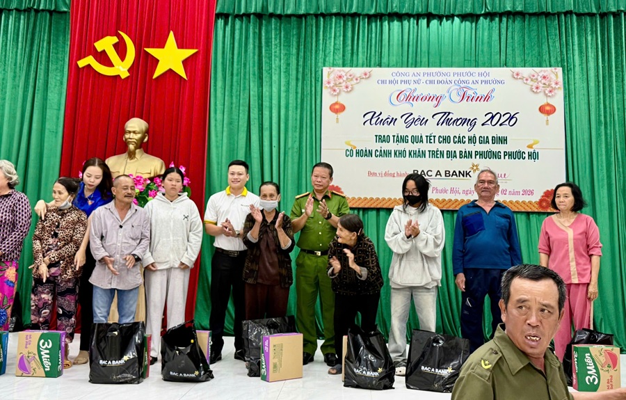 Chương trình “Xuân yêu thương 2026” tiếp tục khẳng định vai trò nòng cốt của lực lượng Công an phường Phước Hội trong công tác bảo đảm an ninh, trật tự gắn với thực hiện tốt nhiệm vụ an sinh xã hội, góp phần củng cố niềm tin của Nhân dân, xây dựng địa bàn ổn định, phát triển bền vững.