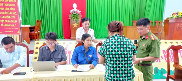 Tổ công tác xã Hải Ninh hướng dẫn người dân tích hợp tài khoản trên VNeID