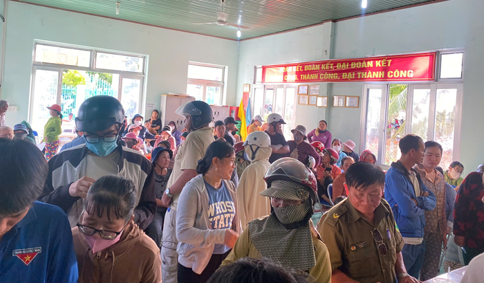 Đông đảo người dân phường B’Lao đến nhận quà, không khí vui tươi, trật tự