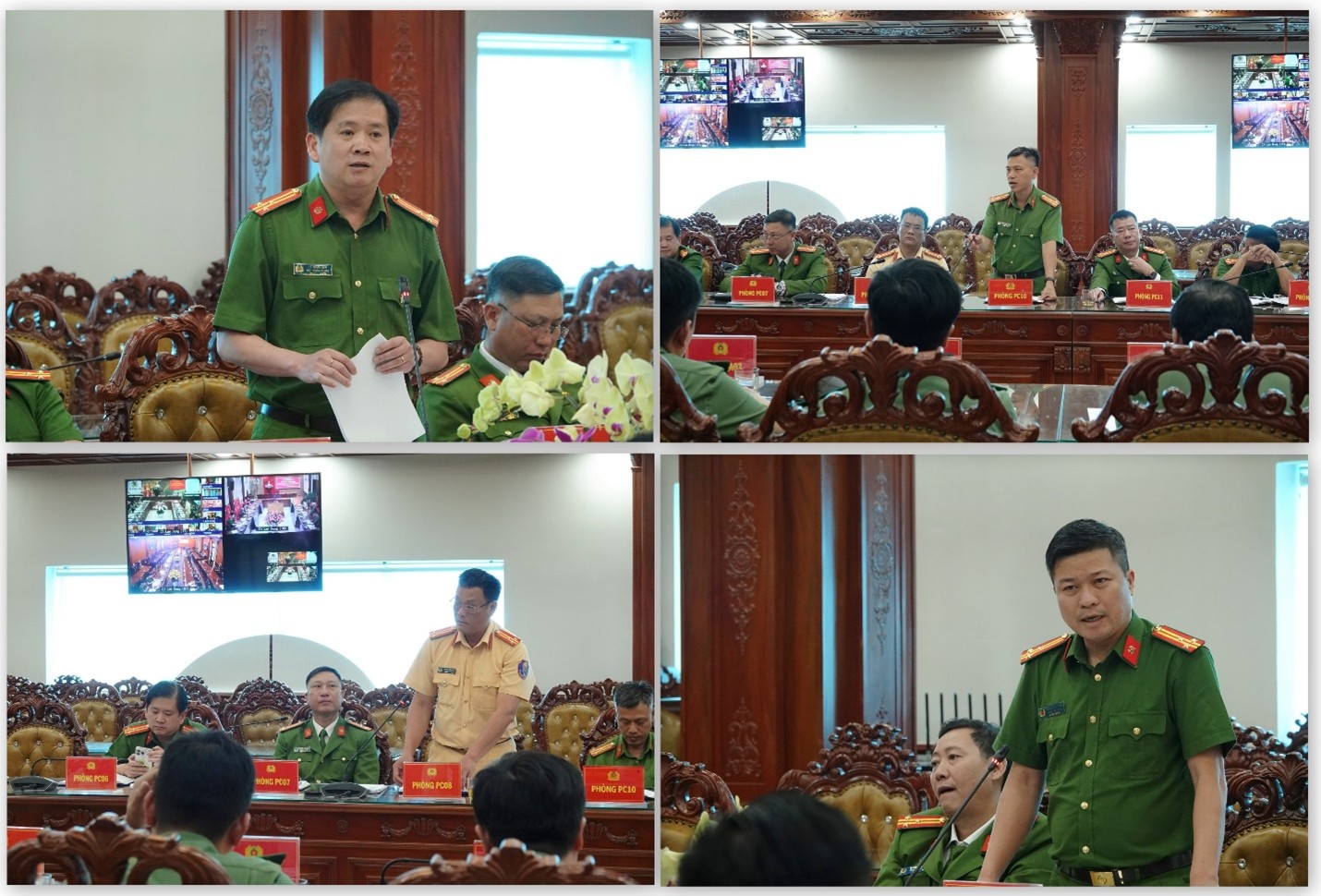 Thông qua hệ thống trực tuyến, Công an các địa phương đã báo cáo tiến độ triển khai kế hoạch, nêu rõ những khó khăn, vướng mắc trong quá trình thực hiện, đồng thời đề xuất các giải pháp cụ thể. Nhiều ý kiến tham luận thể hiện tinh thần trách nhiệm cao, chủ động nhận diện nguy cơ tiềm ẩn tại địa bàn cơ sở; kiến nghị tăng cường phối hợp giữa các lực lượng, đặc biệt là công tác trao đổi thông tin, dự báo tình hình để kịp thời tham mưu xử lý hiệu quả.