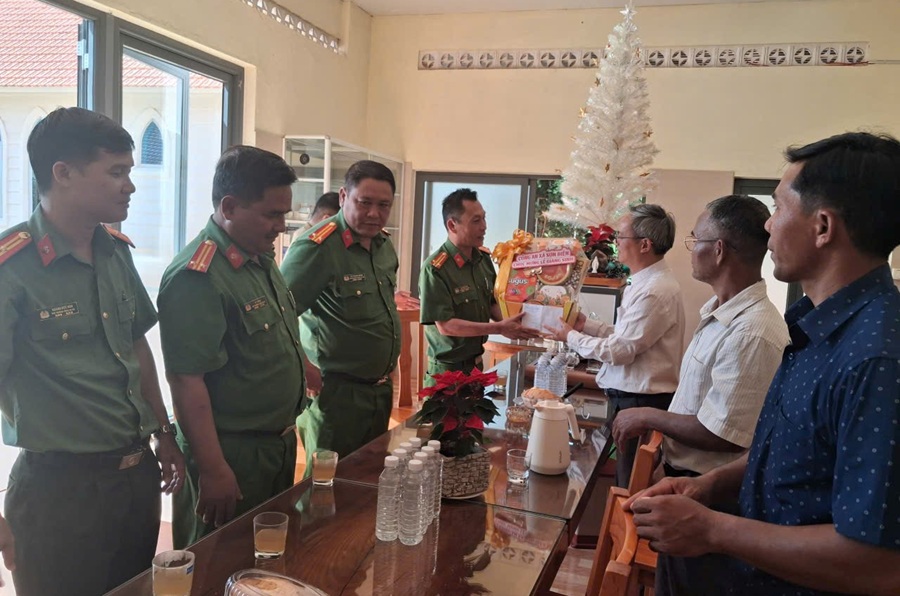 Ban Chỉ huy Công an xã Sơn Điền đến thăm, chúc mừng lễ Noel tại Giáo xứ Sơn Điền