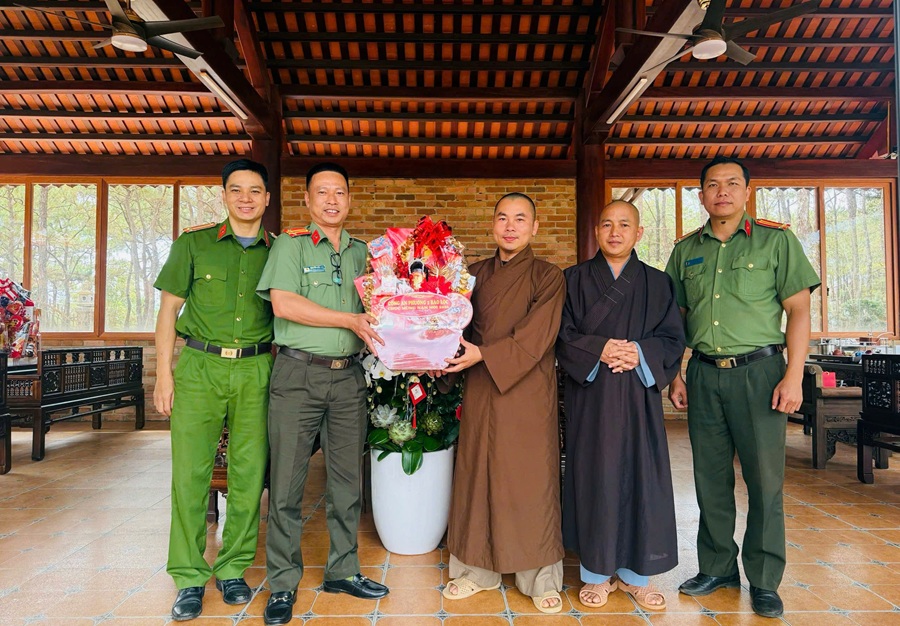 Chỉ huy Công an phường 2 Bảo Lộc cùng cán bộ, chiến sĩ đến thăm hỏi Tu viện Bát Nhã nhân dịp Tết Nguyên đán