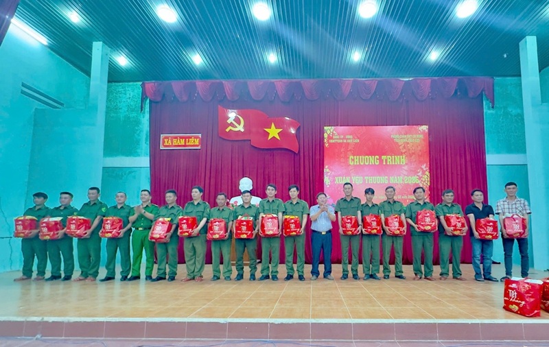 Công an xã Hàm Liêm tặng quà lực lượng tham gia bảo vệ ANTT ở cơ sở dịp Tết
