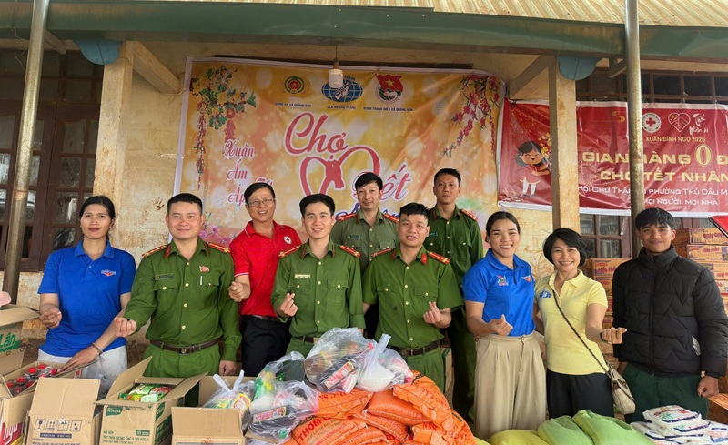 Tại nhiều địa phương, Công an các xã đã tổ chức các chương trình trao quà Tết, “Chợ 0 đồng”, “Xuân tình nguyện”, mô hình “Mẹ đỡ đầu” để chăm lo cho hộ nghèo, gia đình chính sách, con em cán bộ chiến sĩ và đồng bào dân tộc thiểu số. Hàng trăm phần quà gồm tiền mặt, gạo, nhu yếu phẩm thiết yếu đã được trao tận tay người dân, kèm theo những lời thăm hỏi, động viên chân tình. Các hoạt động không chỉ hỗ trợ vật chất mà còn lan tỏa giá trị nhân văn sâu sắc, thể hiện đạo lý “Uống nước nhớ nguồn”, tinh thần tương thân tương ái và trách nhiệm của lực lượng Công an trong công tác an sinh xã hội.