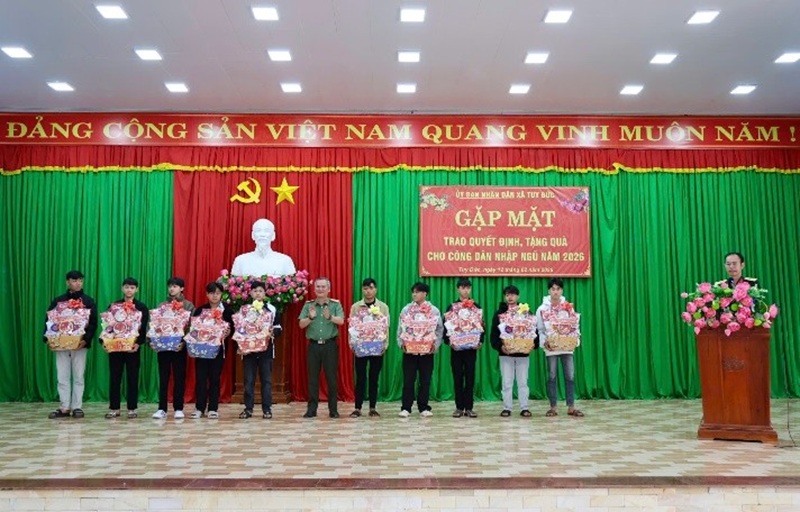 Song song với công tác chăm lo đời sống Nhân dân, nhiều địa phương đã tổ chức gặp mặt, tặng quà, động viên lực lượng an ninh cơ sở và các công dân chuẩn bị lên đường thực hiện nghĩa vụ quân sự, nghĩa vụ tham gia Công an nhân dân năm 2026. Các buổi gặp mặt diễn ra trong không khí trang trọng, ấm áp, ghi nhận, biểu dương tinh thần trách nhiệm của thanh niên và lực lượng nòng cốt ở cơ sở. Qua đó, tạo động lực để các tân binh vững tin lên đường, góp phần hoàn thành chỉ tiêu tuyển quân, đồng thời củng cố vai trò của lực lượng an ninh cơ sở trong giữ gìn trật tự, an toàn xã hội.