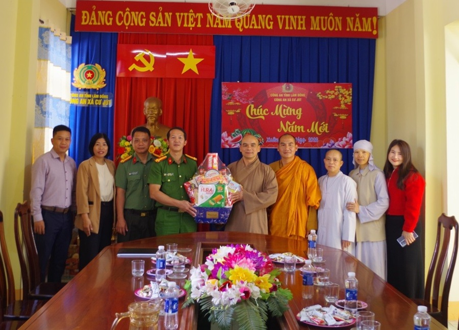 Đoàn đại diện các Chùa trên địa bàn đến thăm chúc Tết Công an xã Cư Jút