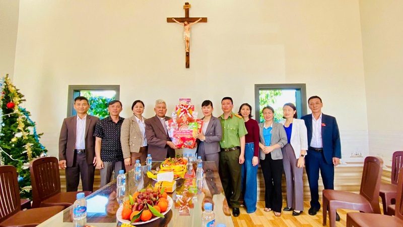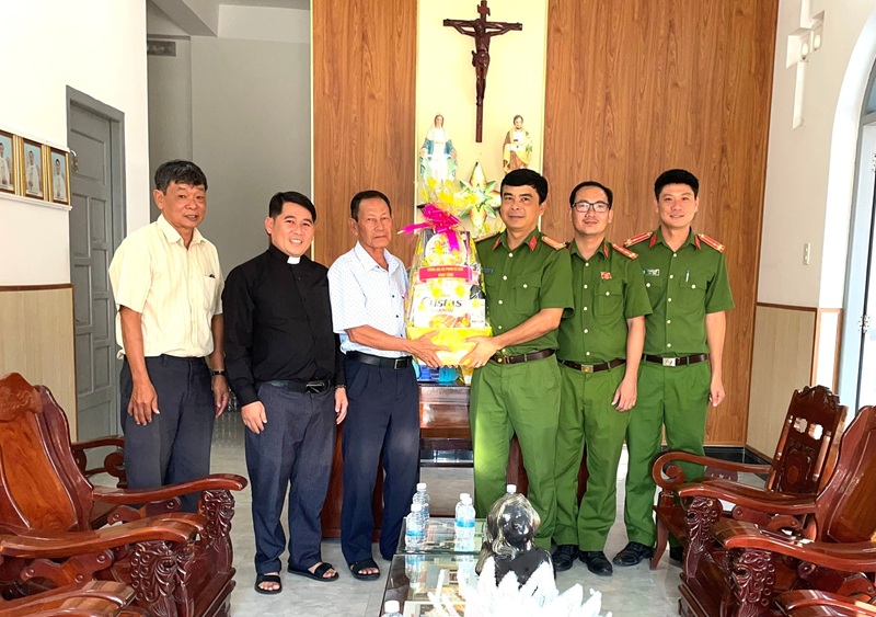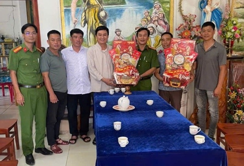 Công an xã Đức An thăm, chúc mừng các cơ sở cơ sở Công giáo, Tin Lành