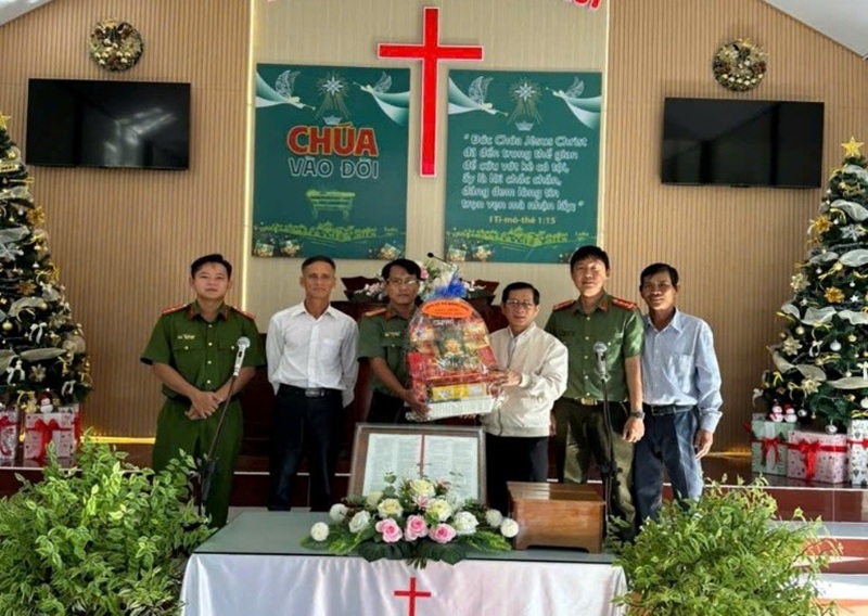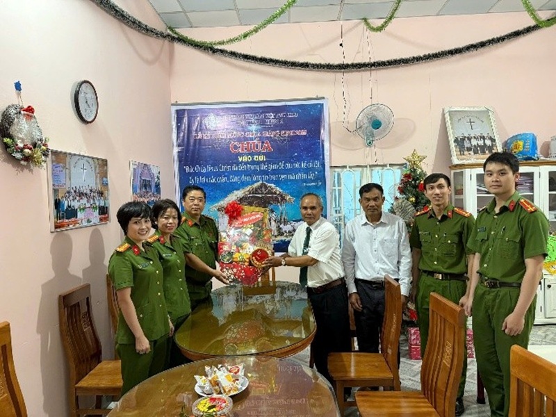 Tập thể Lãnh đạo, chỉ huy công an thăm hỏi, chúc mừng Giáng sinh chi hội Tin lành Tân Lập