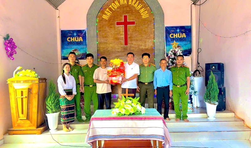 Công an phường B'Lao thăm, tặng quà cơ sở tôn giáo dịp Lễ Giáng sinh 2025