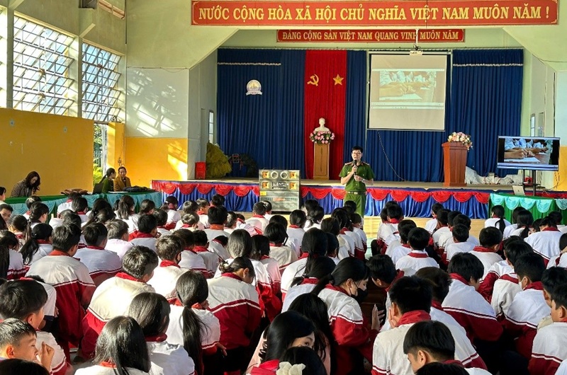 Ngày 14/01/2026, Công an phường Đông Gia Nghĩa tổ chức tuyên truyền pháp luật tại Trường THCS Phan Bội Châu và Trường TH và THCS Trần Văn Ơn với sự tham gia của hơn 1.000 học sinh và giáo viên. Nội dung tuyên truyền tập trung vào các quy định pháp luật liên quan trực tiếp đến học sinh, đặc biệt là phòng, chống pháo nổ, an ninh mạng, xâm hại trẻ em, bạo lực học đường, ma túy, thuốc lá điện tử và trật tự an toàn giao thông. Hình thức tuyên truyền sinh động, kết hợp trao đổi, tương tác đã giúp học sinh nâng cao nhận thức, ý thức chấp hành pháp luật.