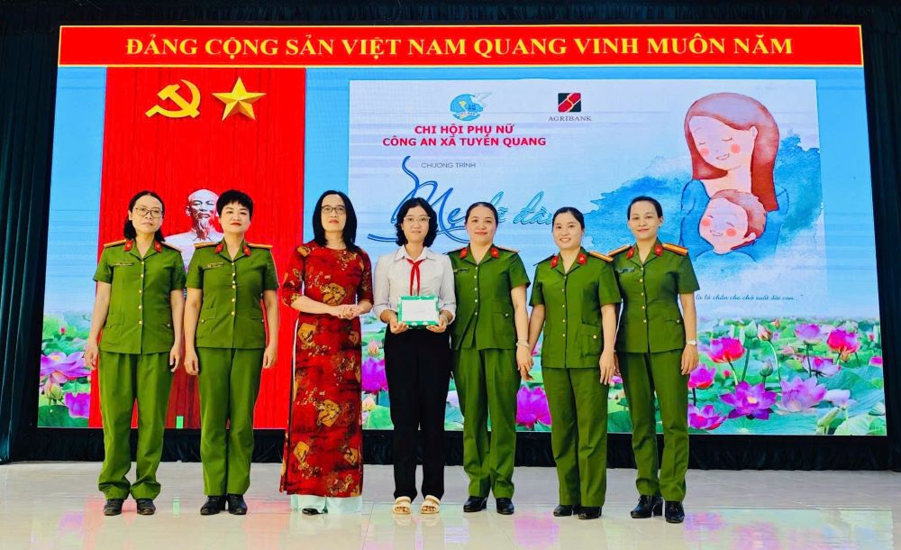 Chi hội Phụ nữ Công an xã Tuyên Quang trao tặng quà cho em Lê Thị Mỹ Tâm