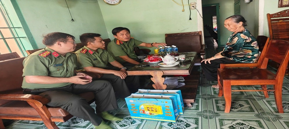 Đoàn công tác do đồng chí Thượng tá Trần Văn Quốc – Phó Trưởng phòng làm Trưởng đoàn đã đến thăm, tặng quà tri ân gia đình liệt sĩ Công an Ung Chiêu Bình – thân nhân của đồng chí Ung Chiêu Thành - Trưởng phòng.