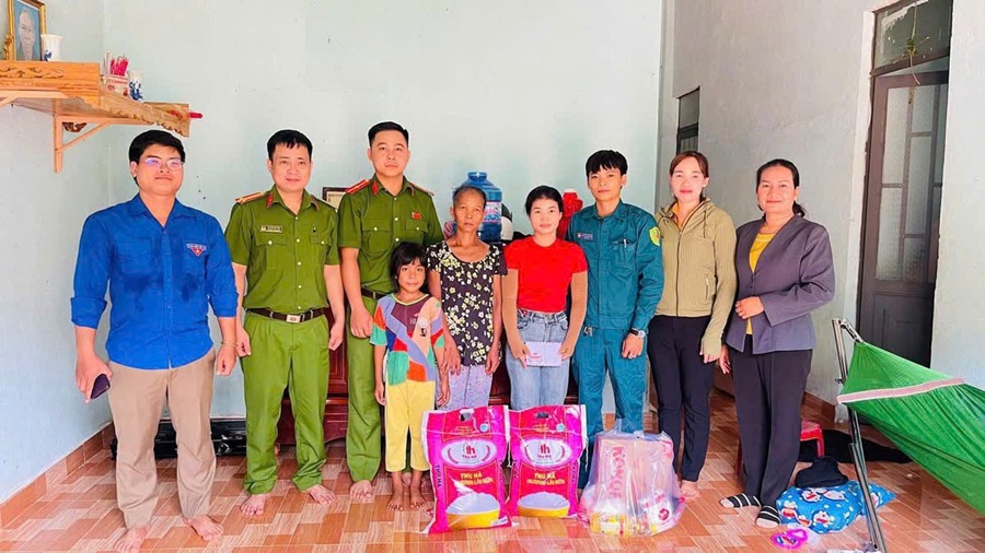 Công an xã trao quà hỗ trợ hàng tháng cho “Con đỡ đầu”