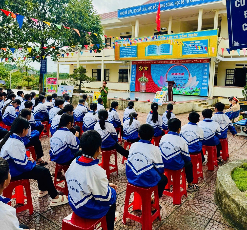 Sáng ngày 03/11/2025, Công an xã Nam Hà Lâm Hà phối hợp với Phòng Cảnh sát giao thông Công an tỉnh và Ban Giám hiệu Trường THCS Nam Hà tổ chức buổi tuyên truyền về an toàn giao thông và phòng, chống ma túy học đường cho gần 500 học sinh, 32 cán bộ, giáo viên. Tại buổi tuyên truyền, học sinh được nghe phổ biến các quy định của Luật Giao thông đường bộ, Luật Phòng chống ma túy, kỹ năng tham gia giao thông an toàn và nhận biết các loại ma túy. Ngoài phần lý thuyết, chương trình còn có phần hỏi – đáp, giao lưu, thi vẽ tranh tuyên truyền giúp các em hứng thú, chủ động tìm hiểu pháp luật.