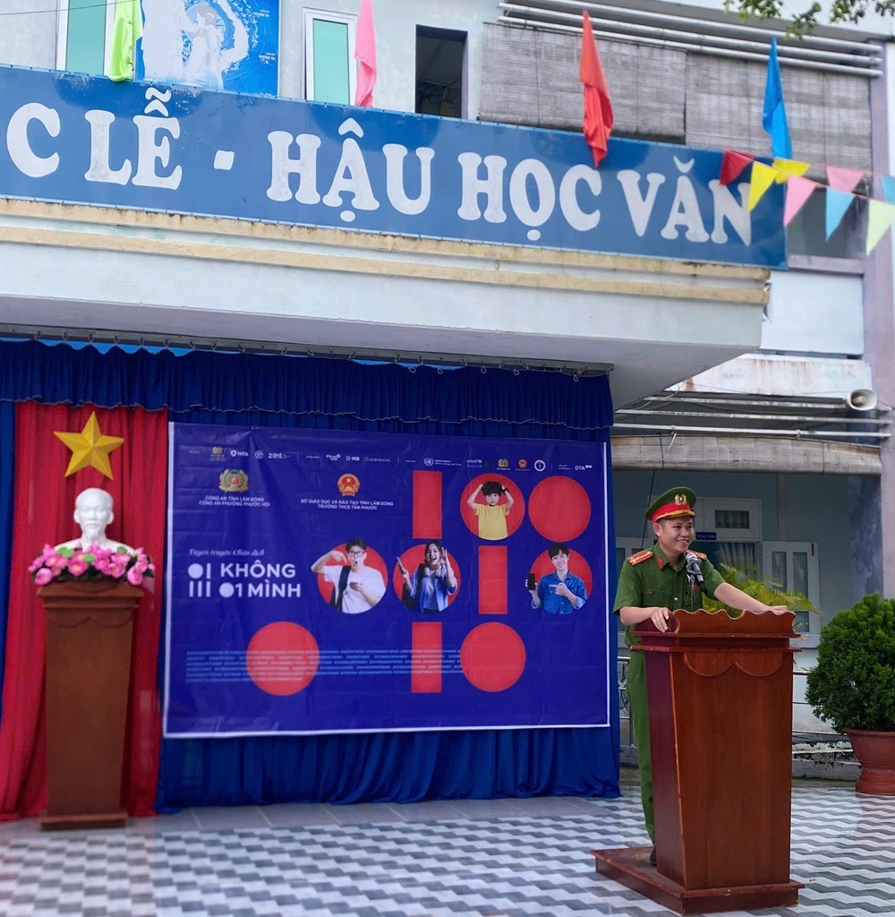 Ngày 10/11/2025, Công an phường Phước Hội phối hợp với Trường THCS Tân Phước tổ chức buổi tuyên truyền hưởng ứng Chiến dịch “Không một mình – Cùng nhau an toàn trực tuyến” cho gần 1.000 cán bộ, giáo viên và học sinh. Buổi tuyên truyền tập trung vào các thủ đoạn lừa đảo trực tuyến, chiếm đoạt tài sản, “bắt cóc online”, đồng thời hướng dẫn học sinh thực hiện “3 không” (không giữ bí mật theo yêu cầu, không chia sẻ thông tin cá nhân, không gặp người lạ qua mạng) và “3 phải” (phải chặn và báo cáo, phải kiểm chứng thông tin, phải chia sẻ với người thân) để sử dụng internet an toàn, lành mạnh.